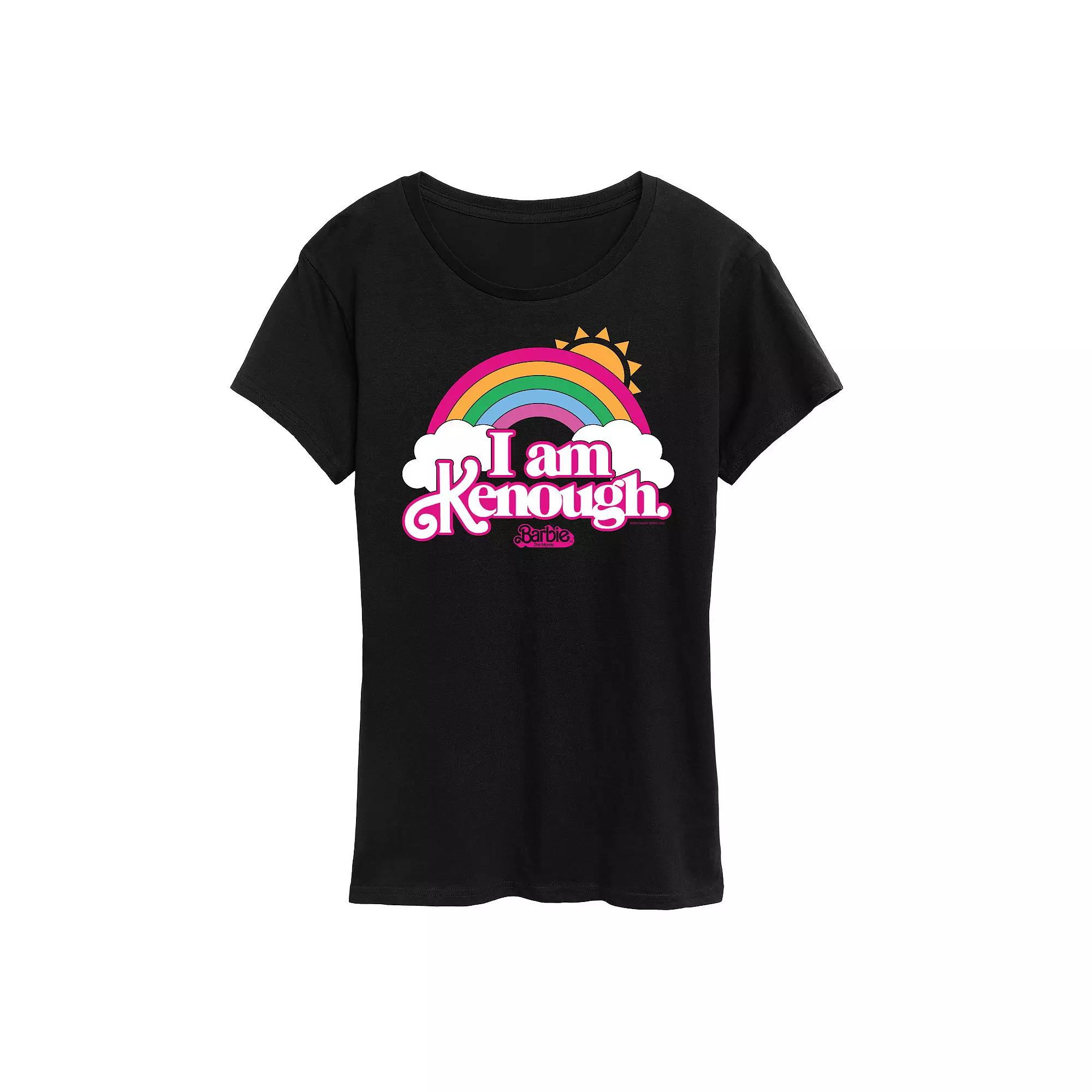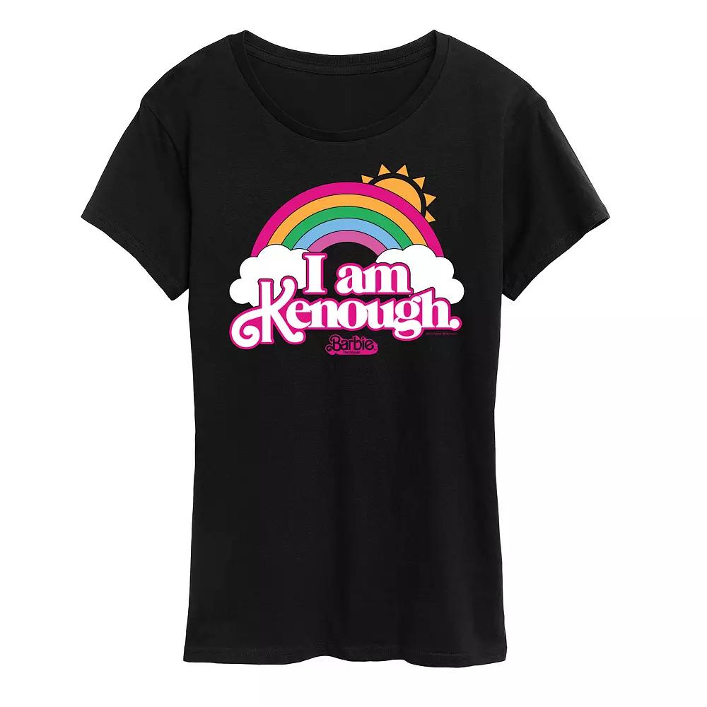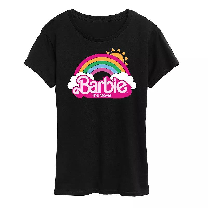 Black Barbie The Movie Logo Rainbow Graphic Tee - Women & Plus. Short-sleeve tee featuring an upbeat graphic on breathable cotton fabric. Relaxed cut.Full graphic text: Barbie the movie.Size S: 26 long from high point of shoulder to hemSize & fit: Relaxed-fit garment with a slightly longer hem. Fits true to size.100% cottonMachine wash; tumble dryImported, screen printed in the USA