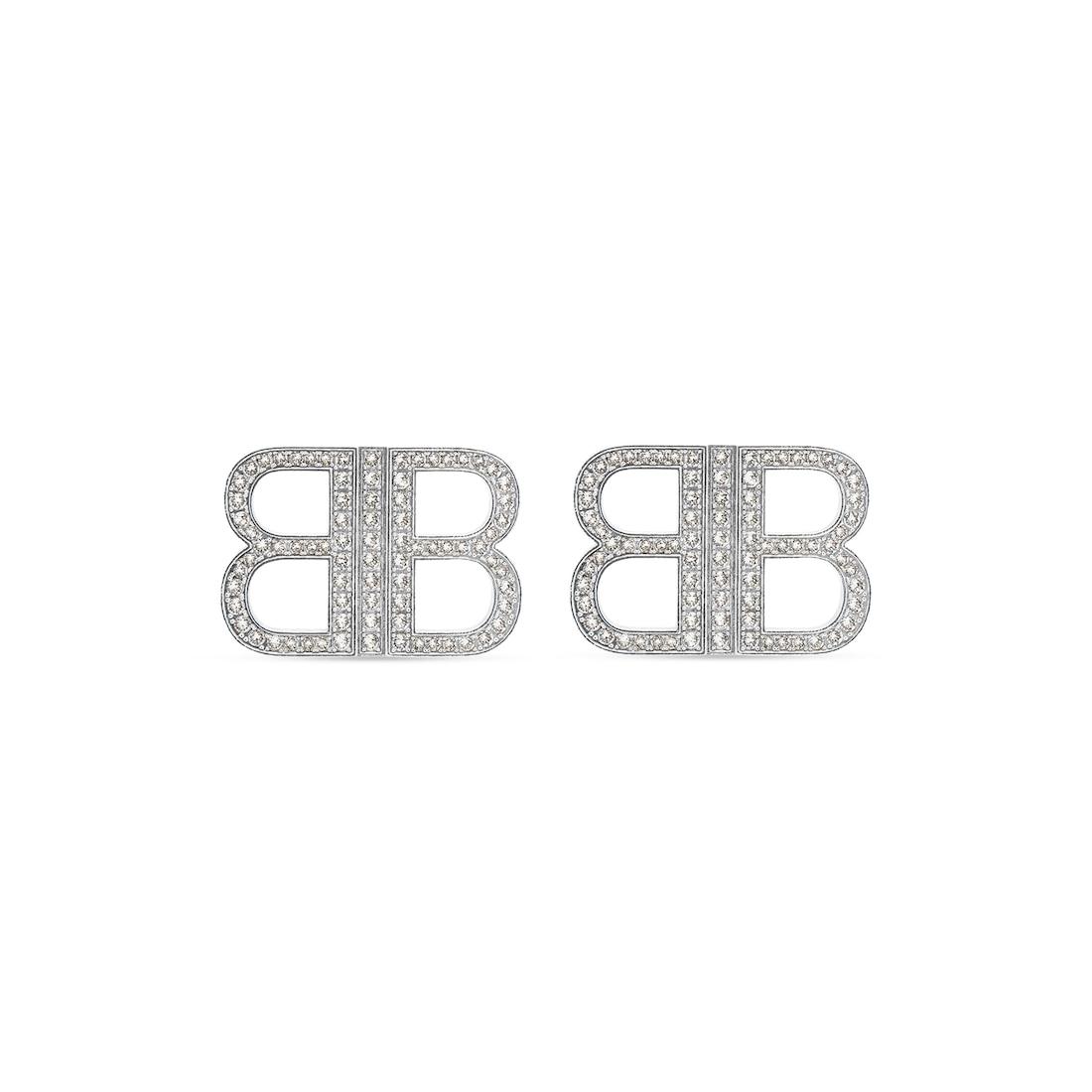 BB 2.0 Earrings in silver aluminium, brass and rhinestones are in several looks of the Balenciaga’s Summer 22, Red Carpet Collection.