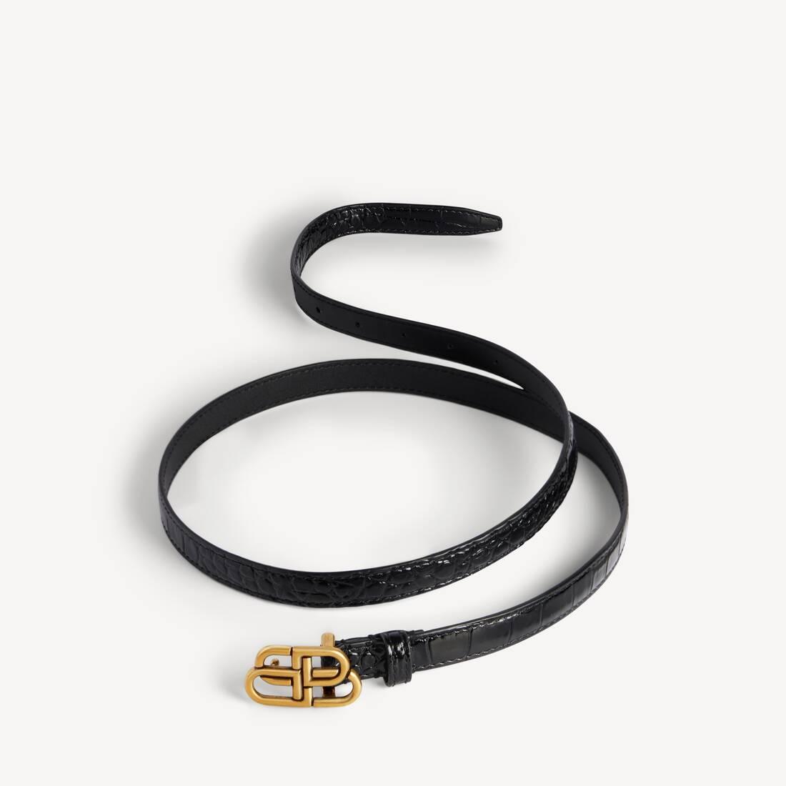 BB Super Thin Belt in black shiny crocodile embossed calfskin, aged-gold hardware