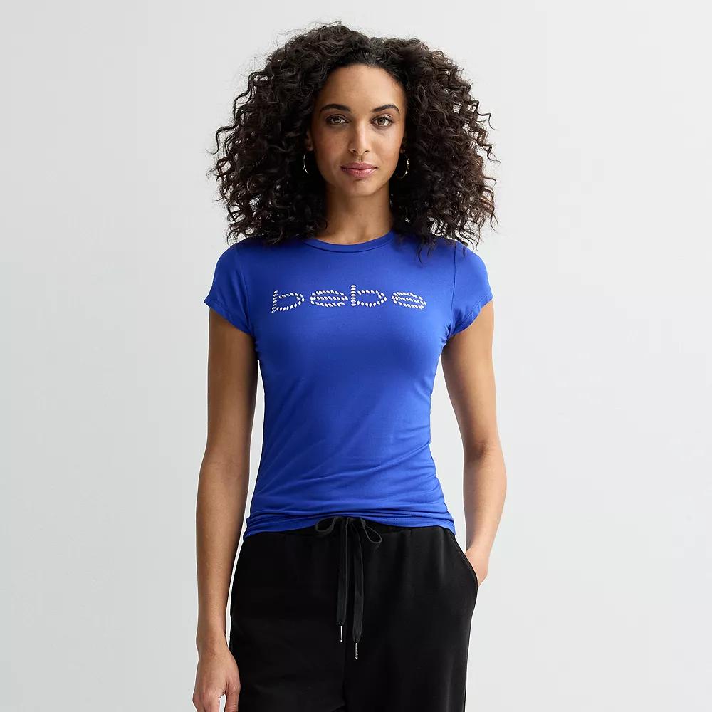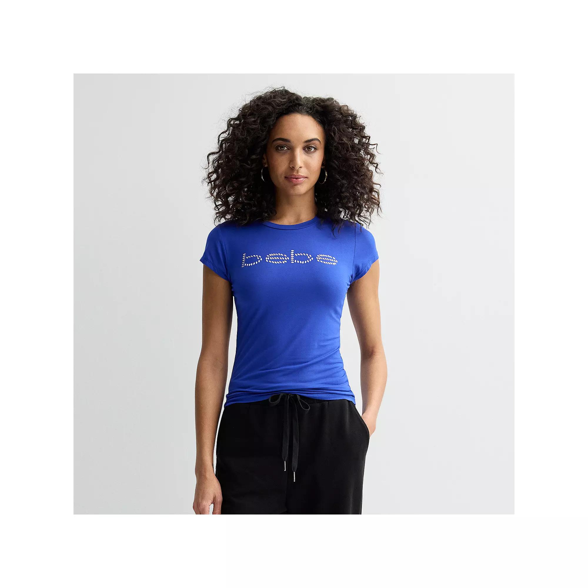 Elevate your casual look with this sleek and stylish women's bebe embellished crewneck T-shirt. Click on this WOMEN'S GUIDE to find the perfect fit and more!Elevate your casual look with this sleek and stylish women's bebe embellished crewneck T-shirt. Click on this WOMEN'S GUIDE to find the perfect fit and more!FEATURES Crewneck Short sleeves Straight hem Jersey construction Pullover stylingFIT & SIZING 24-in. length from shoulder to hemFABRIC & CARE Rayon, spandex Machine wash and tumble dry Imported Size: Small. Color: Blue. Gender: female. Age Group: adult.