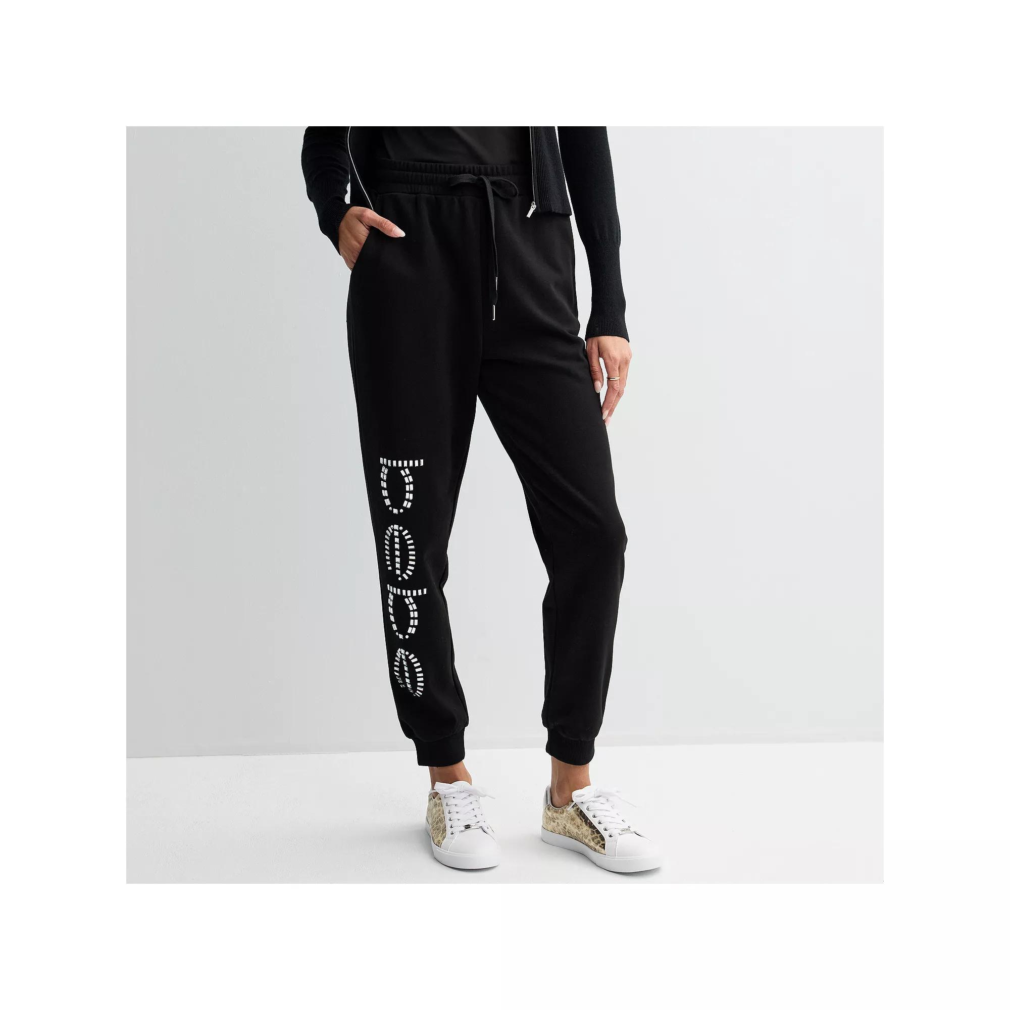 Refresh your style with these bebe High-Rise Rhinestone Logo Joggers.Click on this WOMEN'S GUIDE to find the perfect fit and more!Refresh your style with these bebe High-Rise Rhinestone Logo Joggers.Click on this WOMEN'S GUIDE to find the perfect fit and more!FEATURES Rhinestone logo No closure - pull-on styling 2 pockets Unlined Fleece constructionFIT & SIZING Drawstring elastic waistband High rise sits below the natural waistline Fitted through the hip and thigh 28-in. inseam Banded leg opening 7-in. leg openingFABRIC & CARE Cotton, polyester Machine wash Imported Size: Large. Color: Black. Gender: female. Age Group: adult.