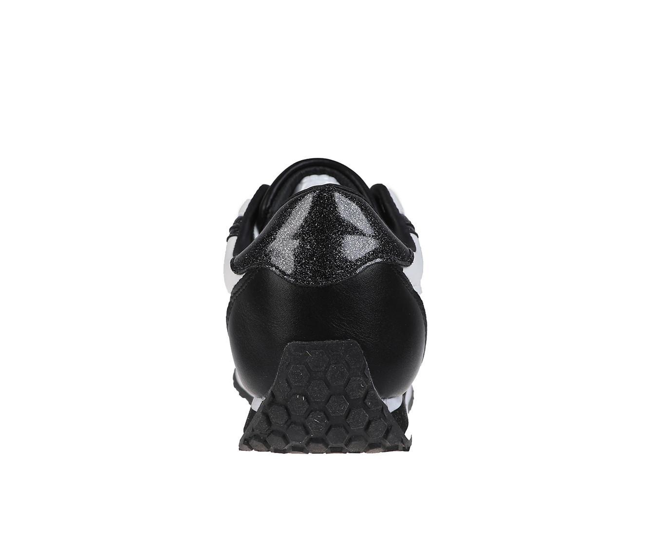 A sleek sneaker with bold contrast and a sporty silhouette. Finished with glittery trim and metallic logo details, it delivers standout style while staying comfortable and easy to wear. Great for adding a fashion-forward touch to everyday looks.