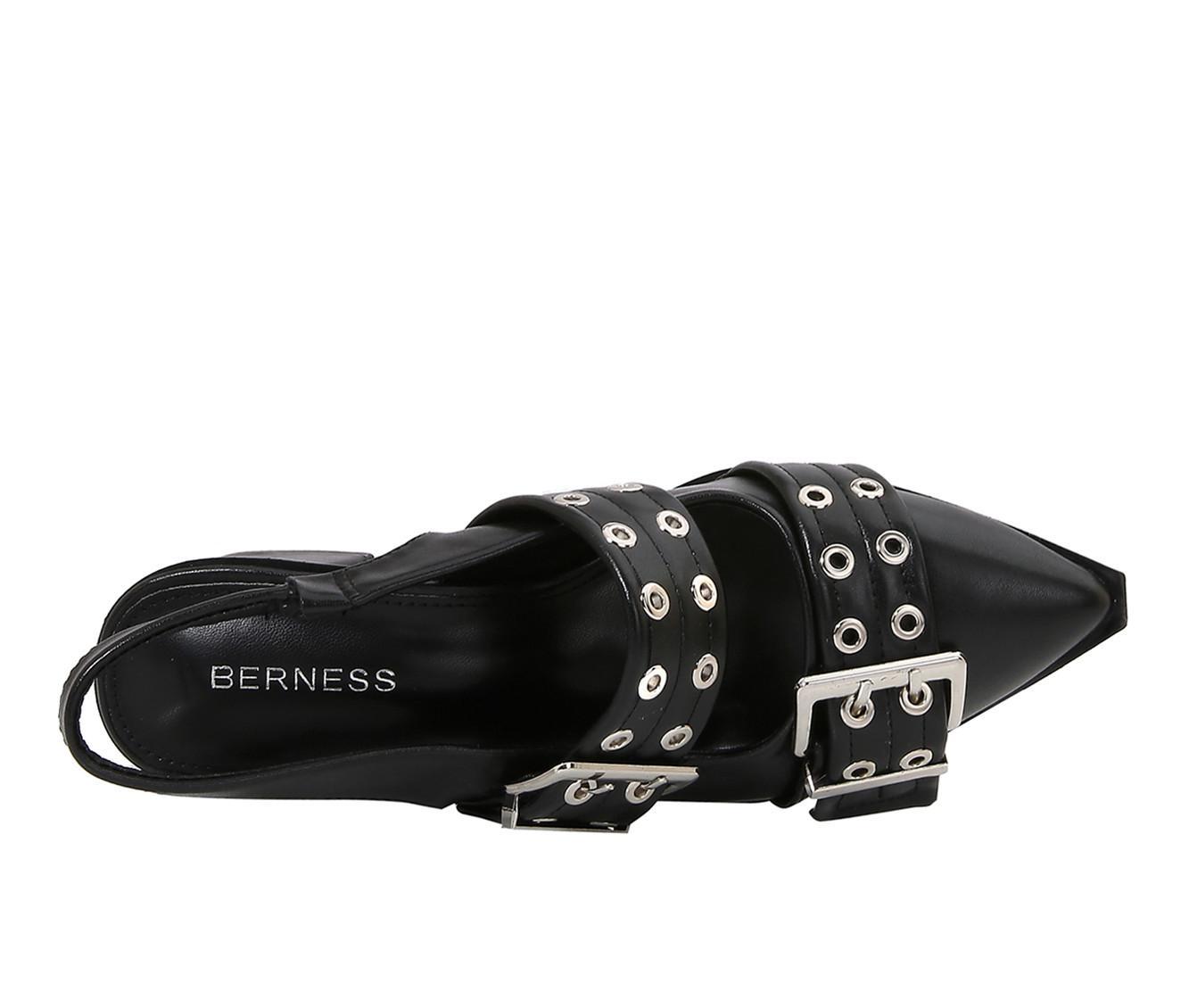 Command attention with these structured slingback heels, featuring a sharply pointed toe and oversized buckle details. The dual-strap upper gives off a refined, edgy vibe, while the low block heel adds stability without sacrificing style. Perfect for power dressing with a twist or giving everyday outfits a modern boost.