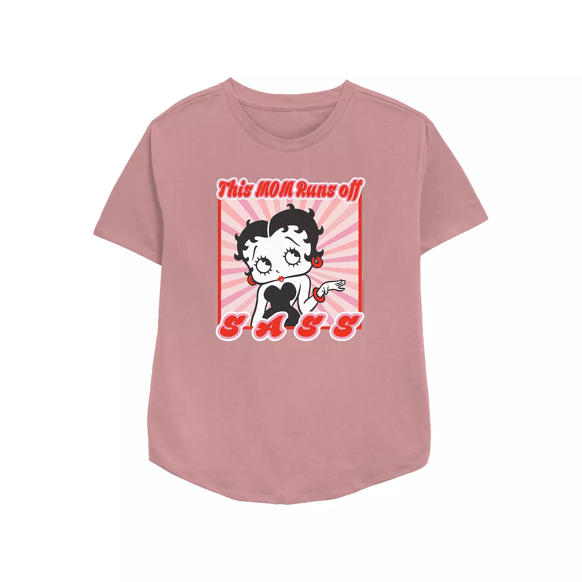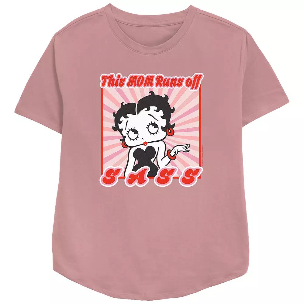 Youll love the fit and feel of this Womens Betty Boop My Mom Runs Off Sass Relaxed Fit Graphic Tee. FEATURES Crewneck Short sleevesFABRIC & CARE Cotton, polyester Machine wash Imported Size: Small. Color: Med Purple. Gender: female. Age Group: adult.