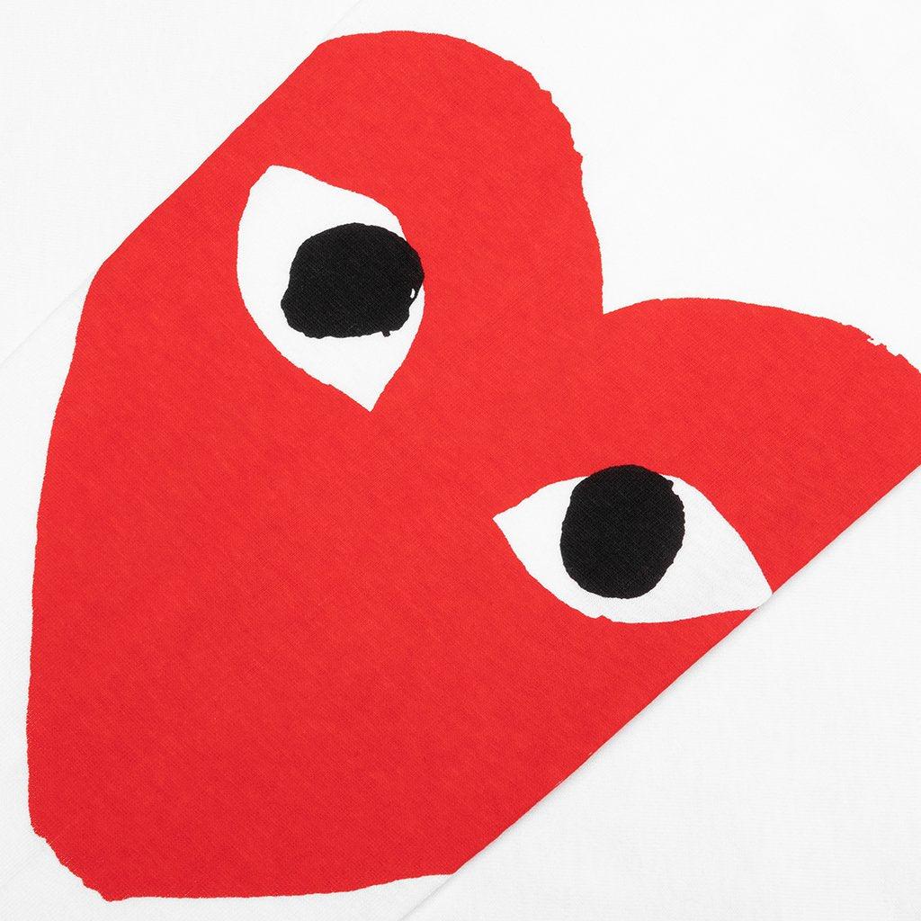 The concept of the Comme des Garcons PLAY line is design by not designing. Characterized by the iconic red heart logo designed by artist Filip Pagowski, the line is a collection of unisex basics, fragrances, and footwear for those who enjoy simplicity. Pictured is the Comme des Garcons PLAY Big Heart L/S in White.AZ T258 051 COMME DES GARCONS PLAY APPAREL HAS A SMALLER FIT, WE RECOMMEND SIZING UP. 100% cotton Ribbed crewneck Printed graphics Made in Japan Style no: AZ-T257-051-1 condition: new