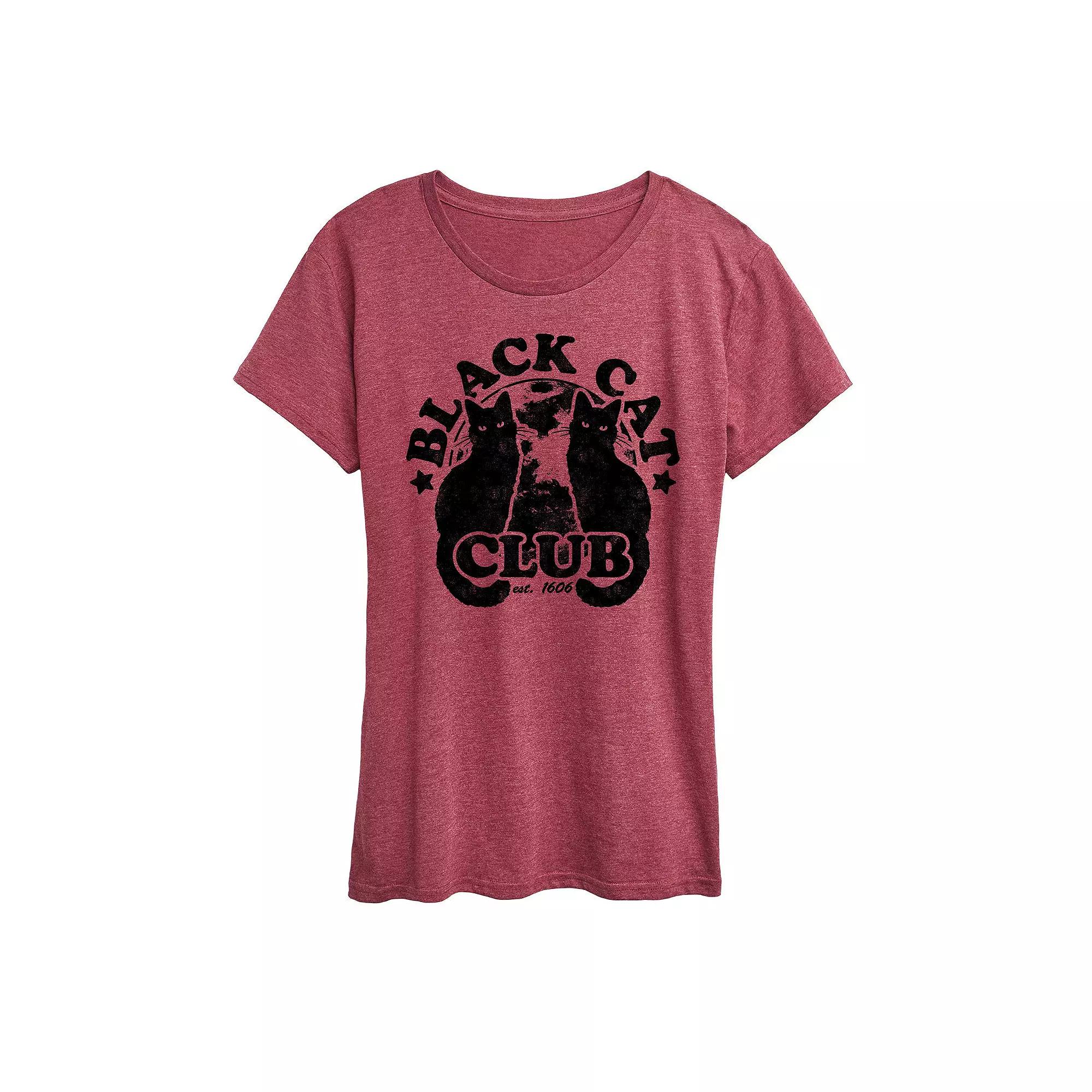 Get ready for spooky season in this womens black cat club Halloween tee. Get ready for spooky season in this womens black cat club Halloween tee. FEATURES Short sleeves CrewneckFABRIC & CARE Solid: cotton; Heather: cotton, polyester Machine wash Imported Size: Medium. Color: Dark Red. Gender: female. Age Group: kids. Pattern: Graphic.