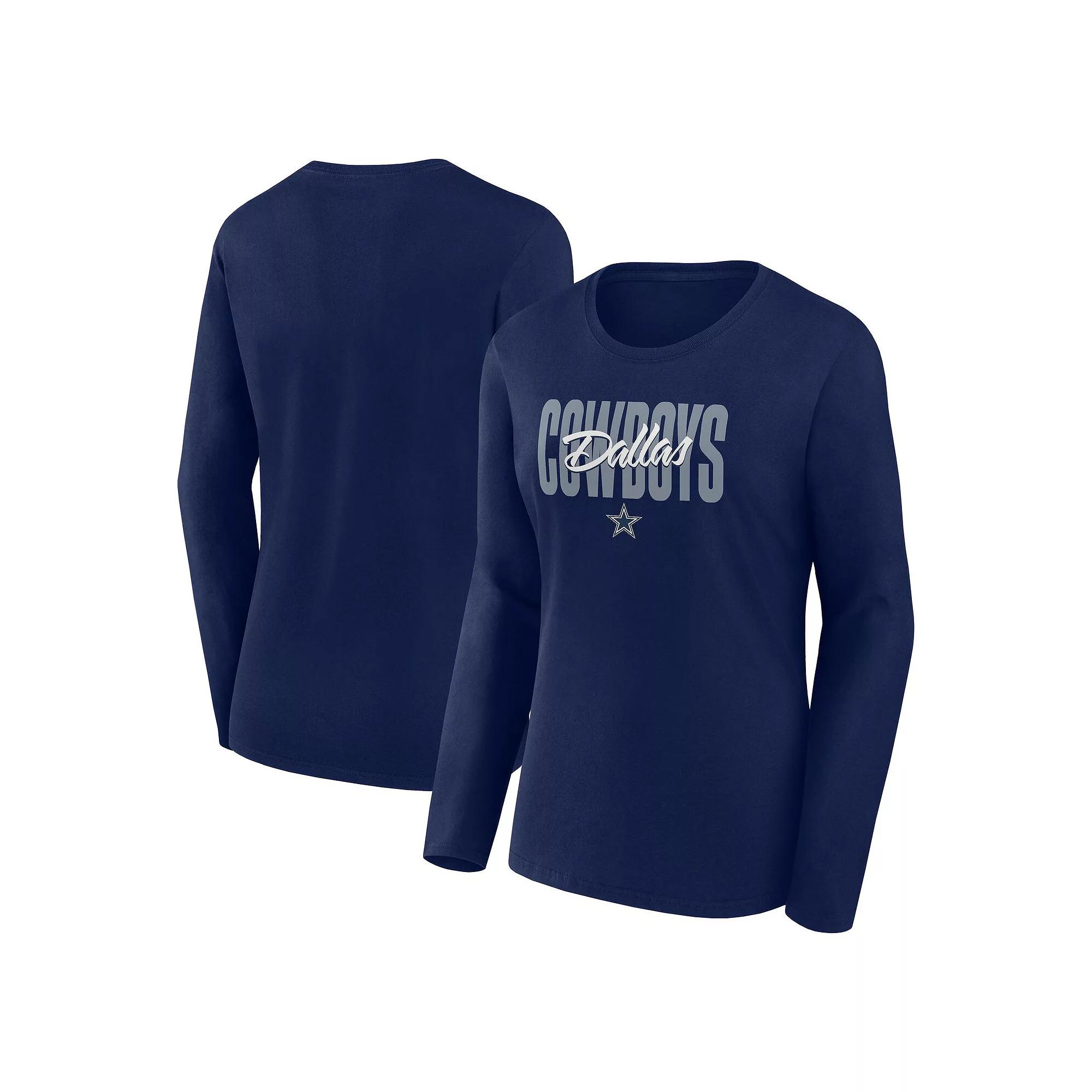 Women's Navy Dallas Cowboys Grip Long Sleeve T-Shirt,