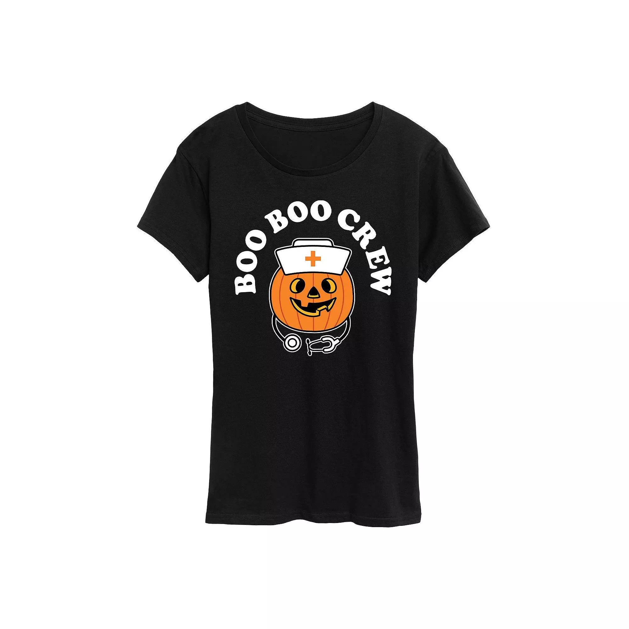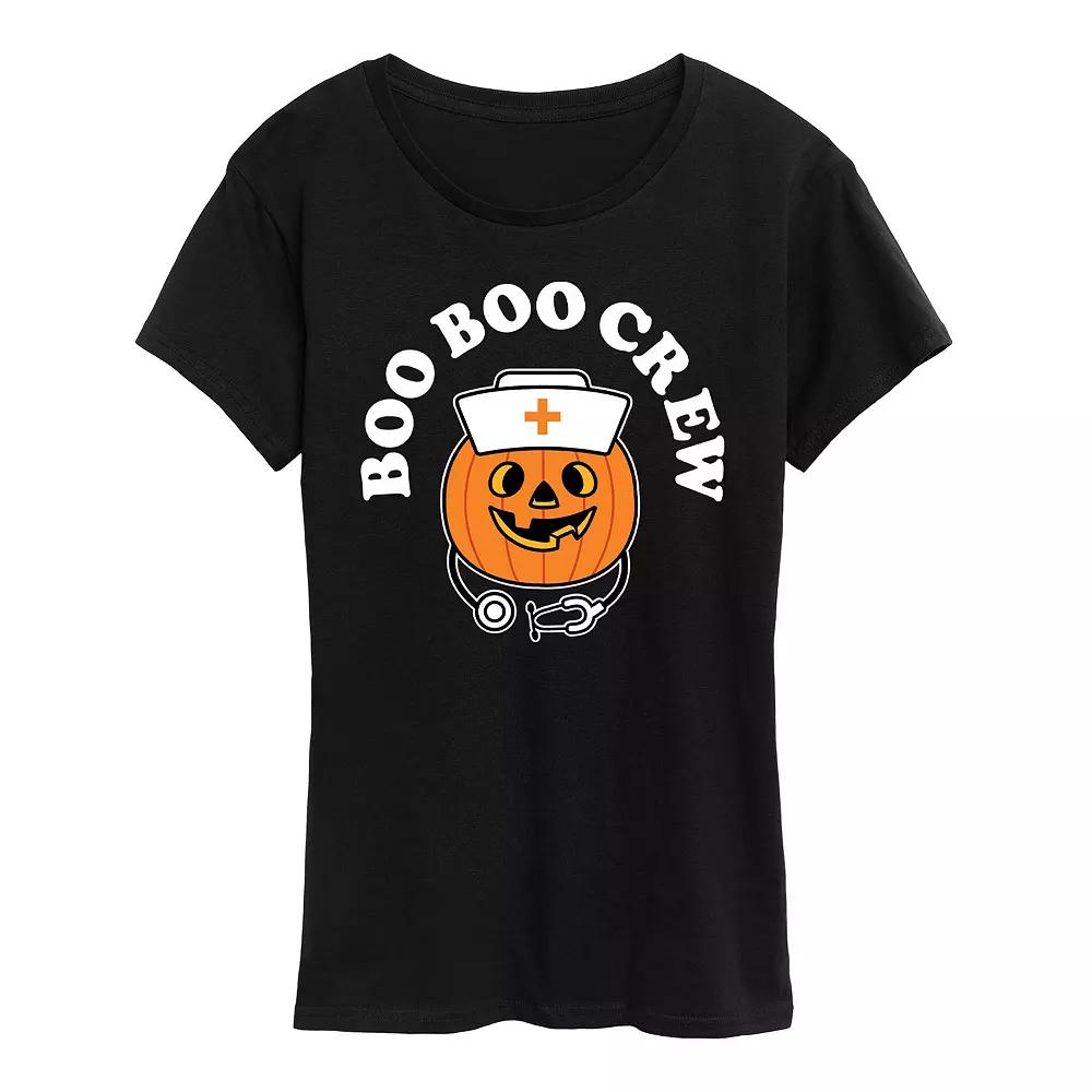 Black Boo Boo Crew Nurse Pumpkin Relaxed-Fit Tee - Women & Plus. Bolster your wardrobe with this relaxed-fit tee featuring a playful graphic and comfortable cotton fabric. Full graphic text: Boo boo crew.Size S: 26 long from high point of shoulder to hem100% cottonMachine wash; tumble dryImported, screen printed in the USA