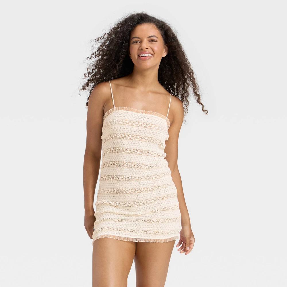 Bubble lace slip dress from Wild Fable™ with a sheer construction. Made from nylon fabric with spandex for flexible comfort that moves with you. Features slender shoulder straps. Pullover style completes the design with easy on and off. If you're not satisfied with any Target Owned Brand item, return it within one year with a receipt for an exchange or a refund. Wild Fable™: A look for every story.
