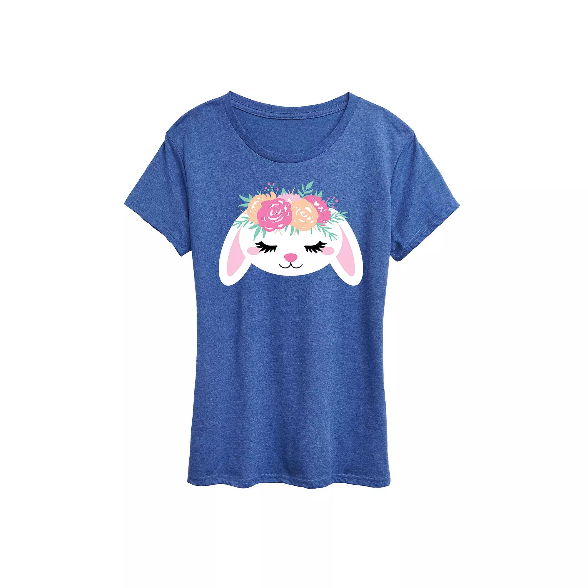 She will love showing off her style with this Womens Bunny Face With Flower Crown Graphic Tee. FEATURES Short sleeves CrewneckFABRIC & CARE Solid Color: Cotton ; Heather Colors: Cotton/Polyester Machine wash Imported Size: Large. Color: Med Blue. Gender: female. Age Group: adult.