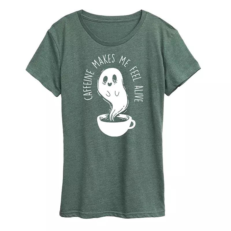 She will love showing off her style with this Womens Caffeine Makes Me Feel Alive Graphic Tee. FEATURES Short sleeves ScoopneckFABRIC & CARE Light Gray and Heather Colors: Cotton/Polyester ; Solid Colors: Cotton Machine wash Imported Size: Medium. Color: Heather Green. Gender: female. Age Group: adult.