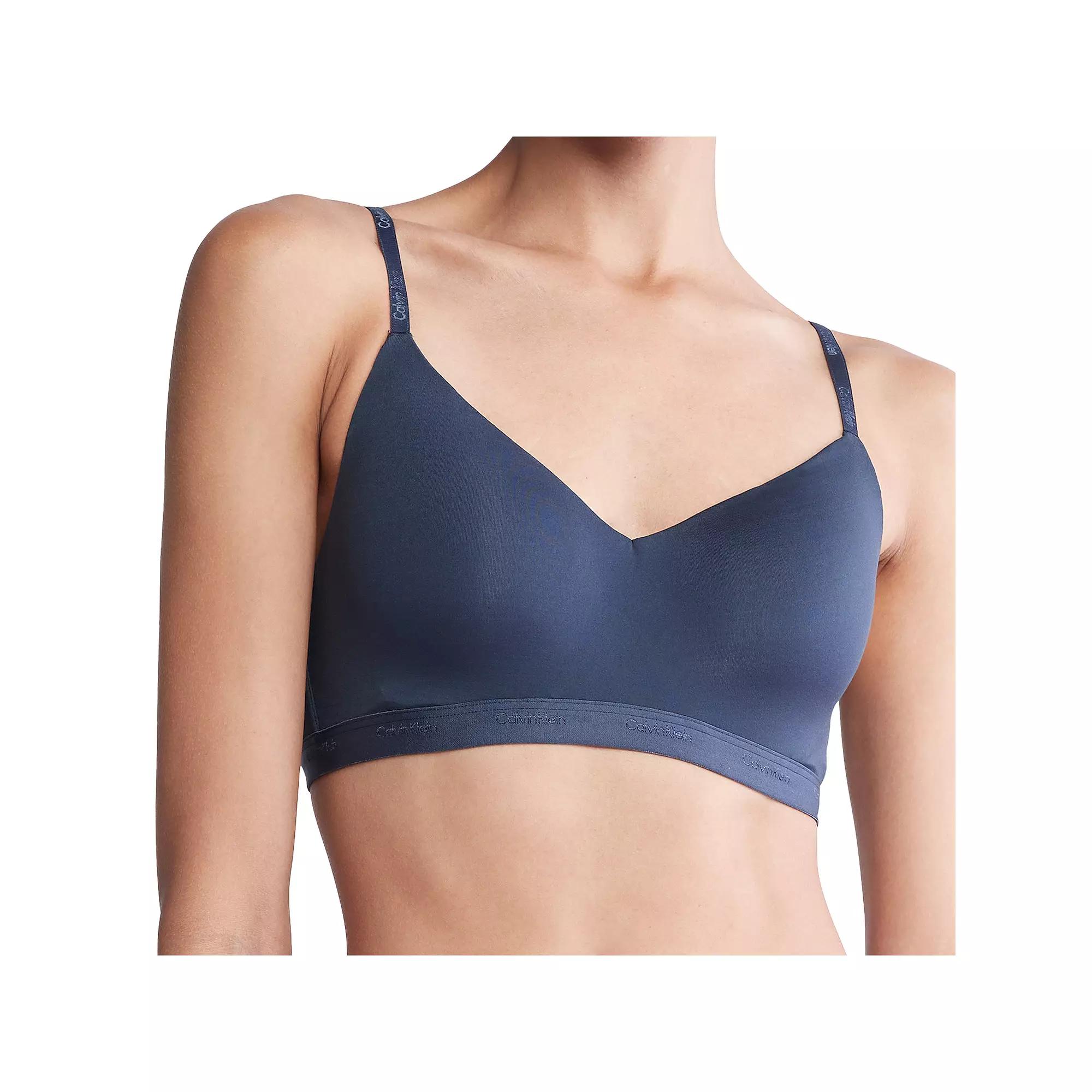 Enjoy style and comfort with this womens Calvin Klein lightly lined bralette. Click on this INTIMATES & SLEEPWEAR GUIDE to find the perfect fit and more! Enjoy style and comfort with this womens Calvin Klein lightly lined bralette. Click on this INTIMATES & SLEEPWEAR GUIDE to find the perfect fit and more! FEATURES Natural tone Calvin Klein logo waistband for a flexible fit with excellent shape retention Cushioned back hook and eye closure Low-impact level offers lightweight support LYCRA ADAPTIV advanced stretch technology with a second skin feel for optimal comfort and support Fully lined Molded cups Wireless Style no. QF7618FIT & SIZING Minimal lift Convertible/adjustable straps 3 hook columns 2 hook rows Clasp closureFABRIC & CARE Nylon, Lycra Elastane Hand wash and line dry Imported Size: Medium. Color: Navy. Gender: female. Age Group: adult.