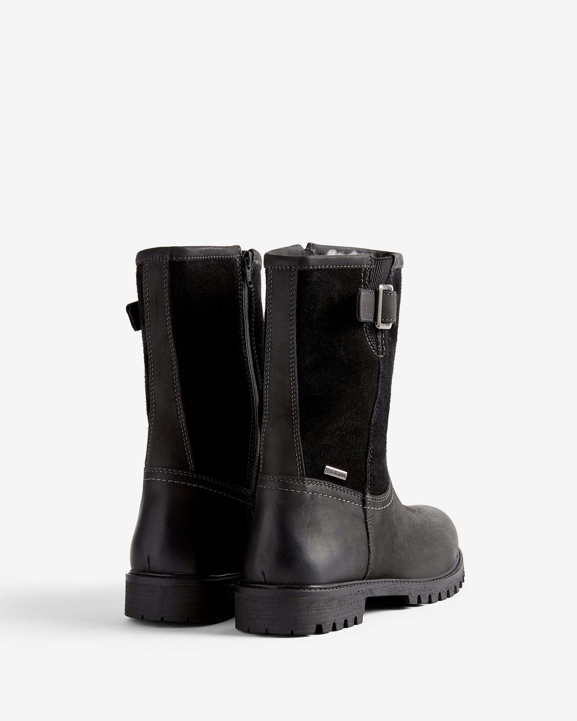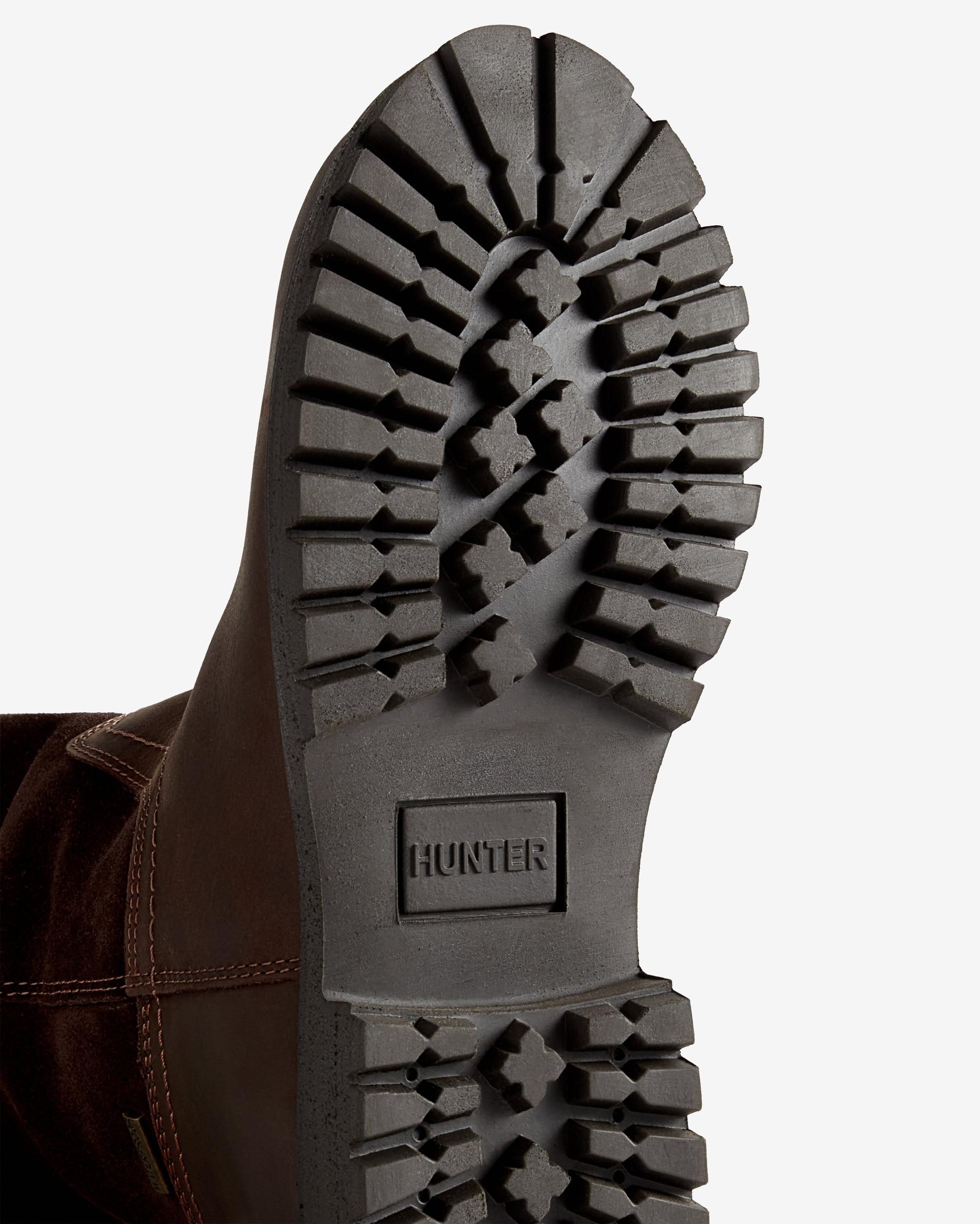 Women's Canna Mid Boot Size/Fit Summary: True to size, Regular fit. This women's mid length boot features a premium full grain leather and suede upper with a waterproof breathable membrane. Moisture-wicking Hunter tartan textile lining combined with goat leather trim. A full YKK side zip for effortless donning Includes a comfortable memory foam footbed. Beneath the foot is a cleated high-grip TPR Rubber outsole featuring a chunky wide block heel, with deep tread ensuring mud release with every step.