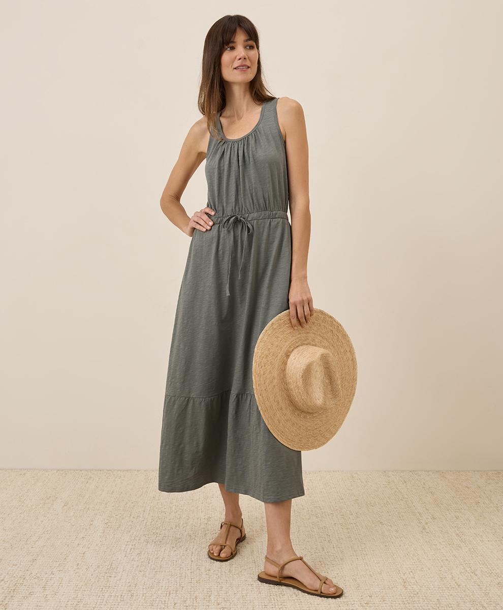 Pact Organic Womens Castor Green Relaxed Slub Tank Maxi Dress