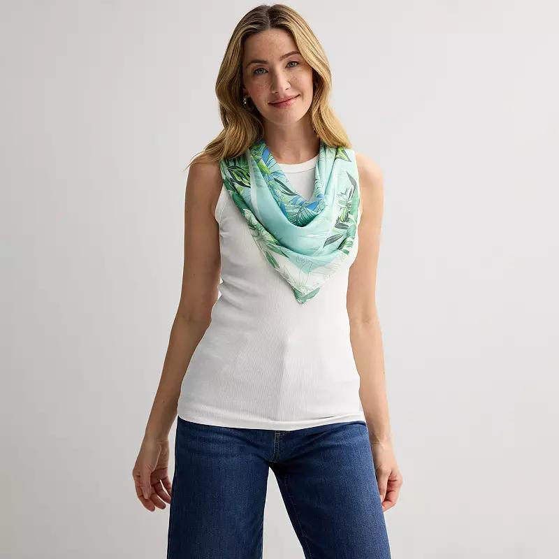 Wrap yourself in the vibrant elegance of the Cejon Palm Square Scarf, featuring a stunning palm print that adds a touch of tropical flair to any outfit. Its versatile design allows for endless styling possibilities, making it the perfect accessory for both casual outings and sophisticated occasions. How do you accessorize? Check out our ACCESSORIES GUIDE for essential tips to elevate your style with must-have accessories.Wrap yourself in the vibrant elegance of the Cejon Palm Square Scarf, featuring a stunning palm print that adds a touch of tropical flair to any outfit. Its versatile design allows for endless styling possibilities, making it the perfect accessory for both casual outings and sophisticated occasions. How do you accessorize? Check out our ACCESSORIES GUIDE for essential tips to elevate your style with must-have accessories.FEATURES Lightweight Square scarfFABRIC & CARE Polyester Hand wash Imported Size: One Size. Color: Blue. Gender: female. Age Group: adult.