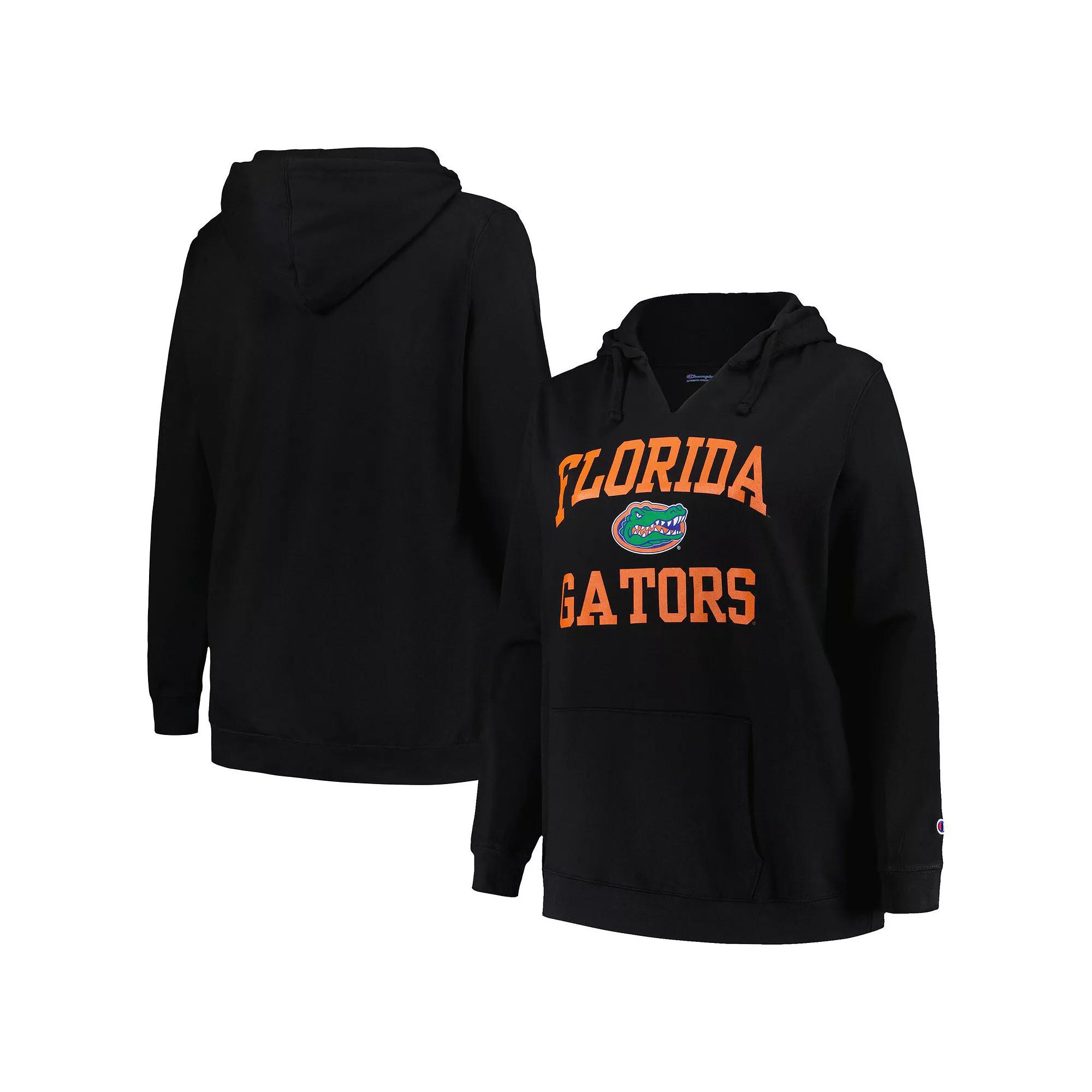 The Champion Black Florida Gators Plus Size Heart & Soul Notch Neck Pullover is the perfect way to show unwavering support for the Florida Gators. This midweight hoodie features a cozy fleece lining, ideal for moderate temperatures. Screen-printed Florida Gators graphics proudly display team spirit, while the notch neck adds a stylish touch. Whether cheering from the stands or showcasing team pride, this pullover is a must-have for devoted fans.The Champion Black Florida Gators Plus Size Heart & Soul Notch Neck Pullover is the perfect way to show unwavering support for the Florida Gators. This midweight hoodie features a cozy fleece lining, ideal for moderate temperatures. Screen-printed Florida Gators graphics proudly display team spirit, while the notch neck adds a stylish touch. Whether cheering from the stands or showcasing team pride, this pullover is a must-have for devoted fans.PRODUCT FEATURESHoodedOfficially licensedMidweight hoodie suitable for moderate temperaturesMachine wash, tumble dry lowLong sleeveFront pouch pocketMaterial: 60% Cotton/40% PolyesterPulloverNotch neckFleece liningImportedBrand: ChampionScreen print graphics Size: 3X. Gender: female. Age Group: adult.