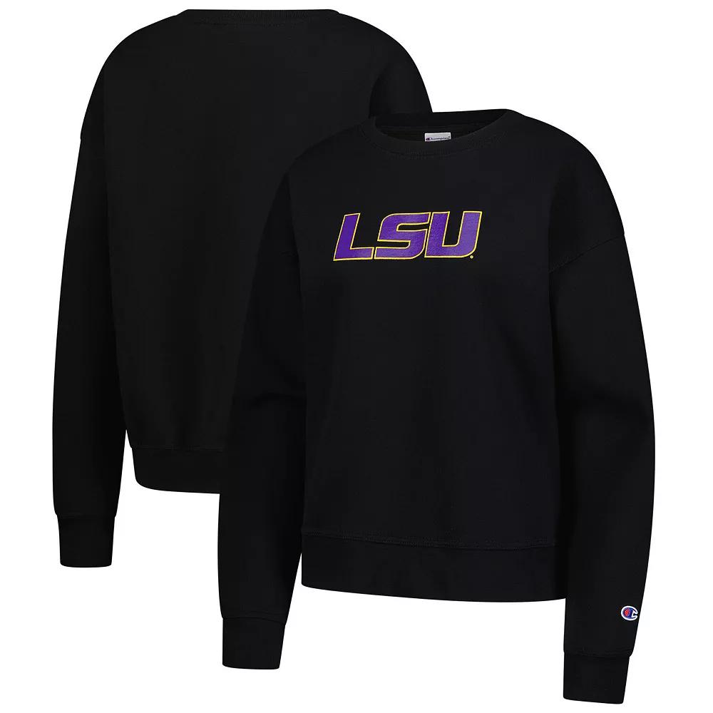 Gear up for game day in this cozy LSU Tigers Powerblend Sweatshirt by Champion. It features durable fleece fabric brushed to create extra softness and designed to reduce pilling and shrinkage for a stay-true fit. Dropped shoulders and printed team graphics make this sweatshirt a perfect choice for staying comfortable and stylish while showing your loyalty to the LSU Tigers. Dropped shoulders provide a roomy, relaxed feel. Imported. Long sleeve. Midweight sweatshirt suitable for moderate temperatures. Crew neck. Machine wash, tumble dry low. Durable fleece fabric brushed to create extra softness and designed to reduce pilling and shrinkage for a stay-true fit. Officially licensed. Team graphics printed across the front. Relaxed Fit: Loose and roomy across the chest, shoulders and body. Material: 50% Cotton/50% Polyester. Pullover. Robust double-needle stitching adds durability. Brand: Champion. Color: Black. Gender: female. Age Group: adult.