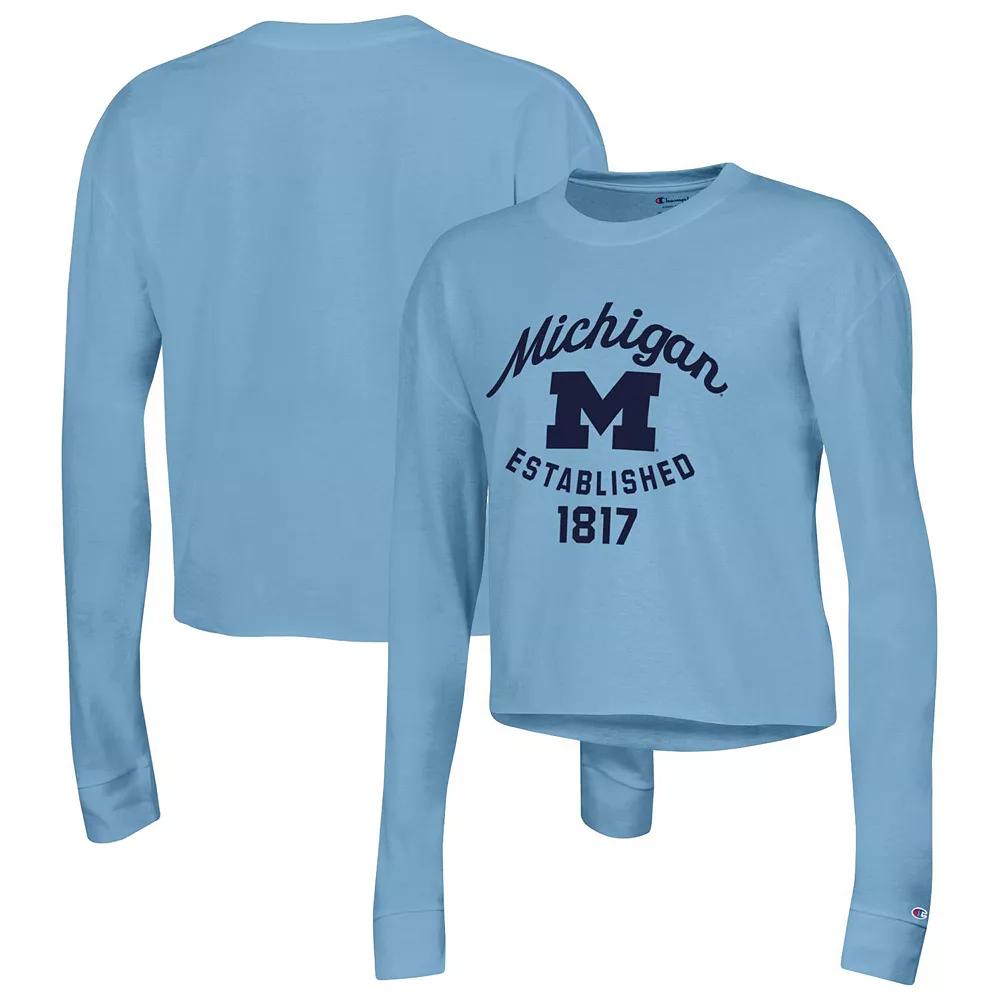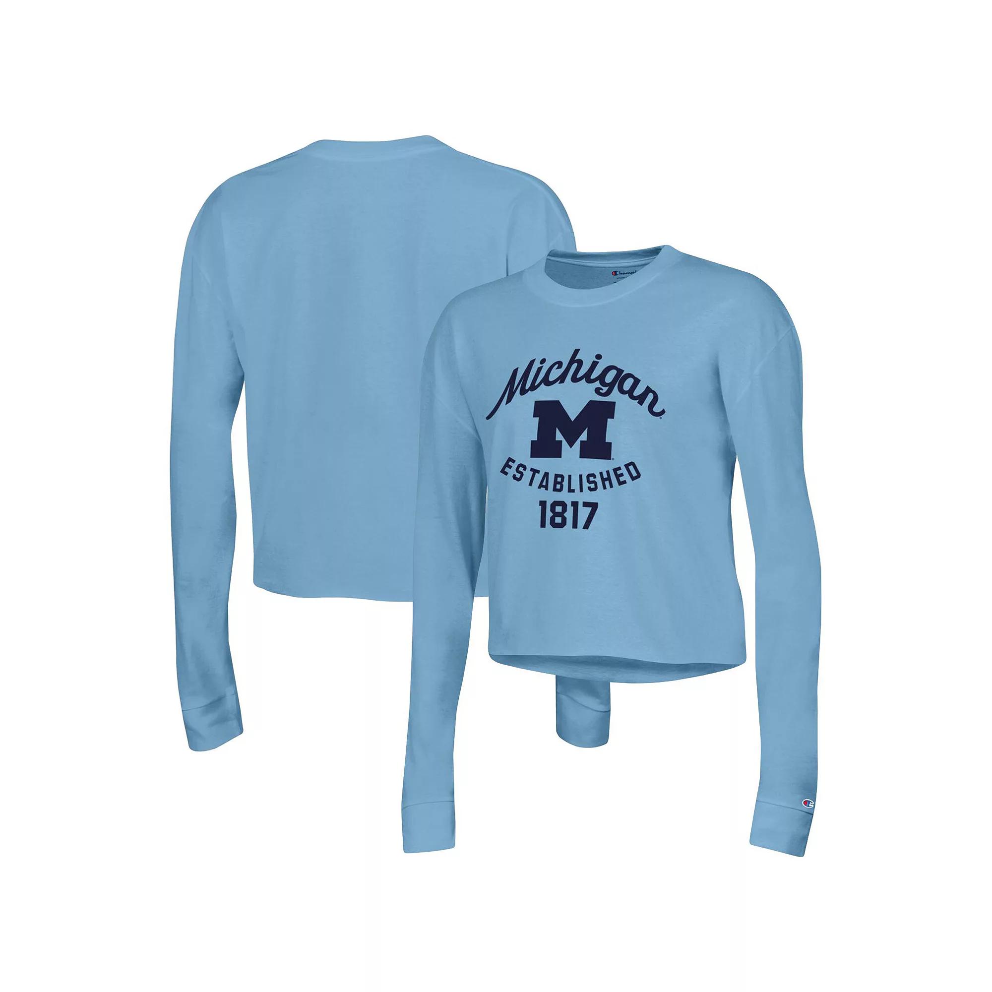 Women's Champion Blue Michigan Wolverines Boyfriend Cropped Long Sleeve T-Shirt,