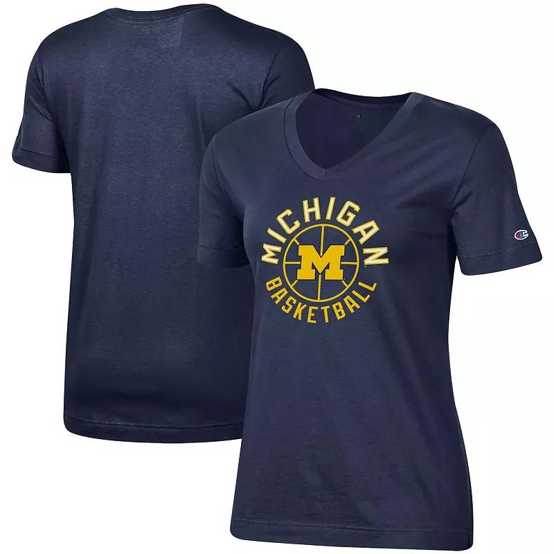 Women's Champion Navy Michigan Wolverines Basketball V-Neck T-Shirt,