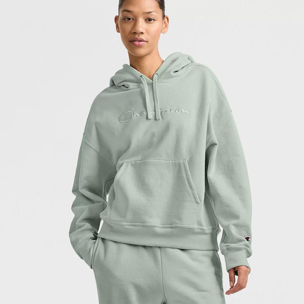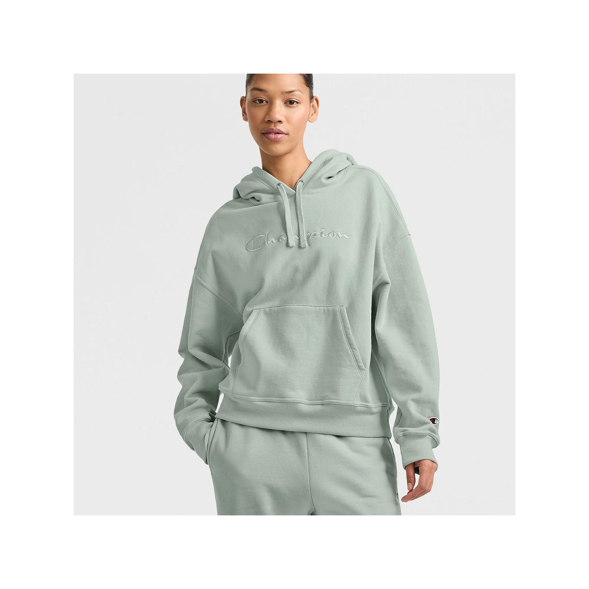 Amp up your athletic style with this Women's Champion Powerblend Embroidered Logo Hoodie.Click on this WOMEN'S GUIDE to find the perfect fit and more! Amp up your athletic style with this Women's Champion Powerblend Embroidered Logo Hoodie.Click on this WOMEN'S GUIDE to find the perfect fit and more! TECHNOLOGIES & FEATURES Running, training & leisure Fleece constructionRibbed cuff and waistband Front kanga pocket Jersey lined attached hood Reduced shrink Reduced pill Signature stripe twill tape at back neckIconic 'C' patch at left wrist 24 3/4' front body lengthFIT & SIZING Midrise sits above the hip Loose fit LightweightFABRIC & CARE Polyester, cotton Machine wash Imported Size: Xxl. Color: Clever Sage. Gender: female. Age Group: adult.