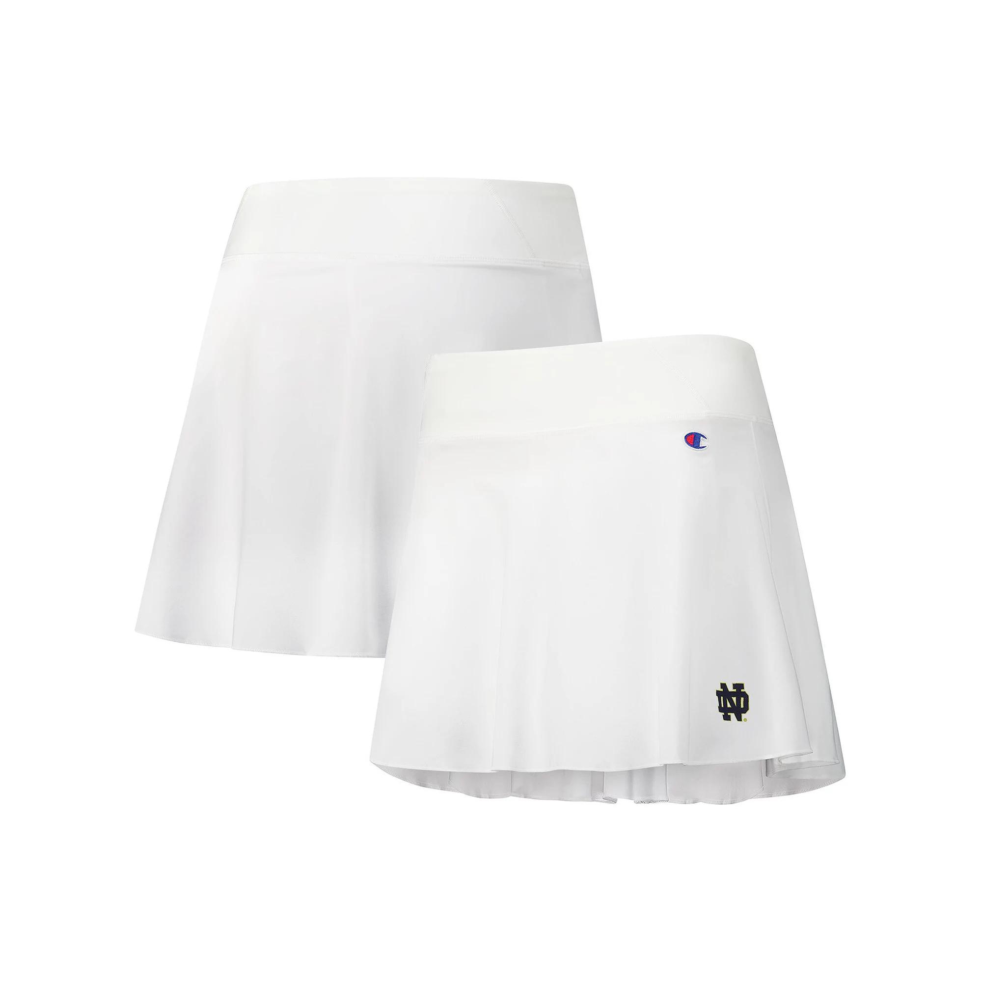 Get ready for game day with this comfortable and stylish Notre Dame Fighting Irish Tailgate Soft Touch Skort by Champion. The combination of a soft and stretchy skirt with built-in shorts provides the perfect blend of comfort and coverage, making it ideal for all-day wear. With a hidden interior waistband pocket and a convenient side phone pocket on the shorts, you can cheer on the Fighting Irish while keeping your essentials close at hand.Get ready for game day with this comfortable and stylish Notre Dame Fighting Irish Tailgate Soft Touch Skort by Champion. The combination of a soft and stretchy skirt with built-in shorts provides the perfect blend of comfort and coverage, making it ideal for all-day wear. With a hidden interior waistband pocket and a convenient side phone pocket on the shorts, you can cheer on the Fighting Irish while keeping your essentials close at hand.PRODUCT FEATURESMachine wash, tumble dry lowStretch woven flared skirtSerged hemOutseam on size S measures approx. 14Inseam for shorts measures approx. 3.5Team logo screen printed at bottom leftImportedOfficially licensedBuilt-in shorts with a close-to-body fit add an extra layer of coverage for more comfortable wearingHidden interior waistband pocketElastic waistbandSide phone pocket on shortsMaterial: 92% Polyester/8% Elastane - Skirt; 78% Polyester/22% Elastane - ShortsBrand: Champion Size: XL. Color: White. Gender: female. Age Group: adult. Material: Cotton.