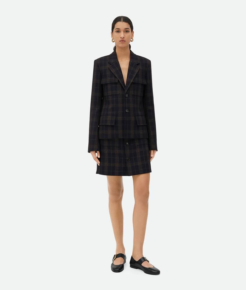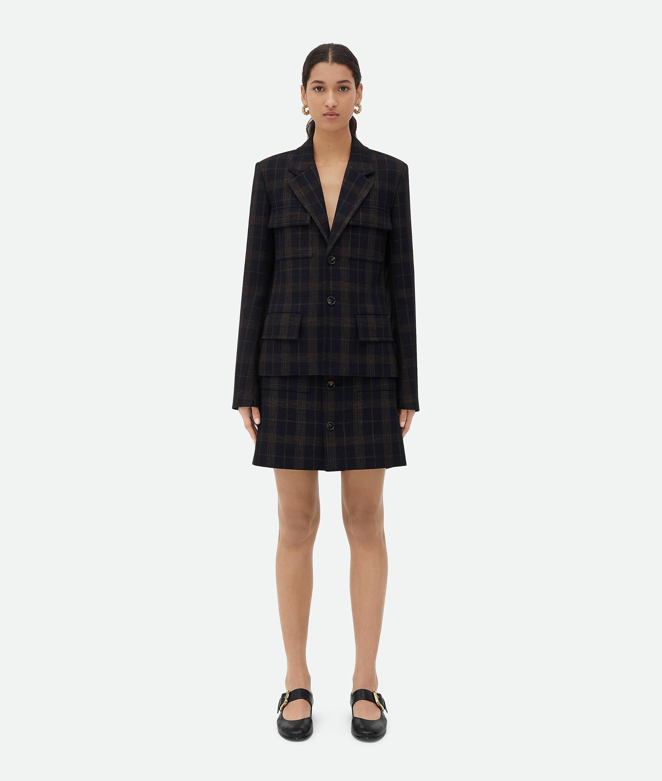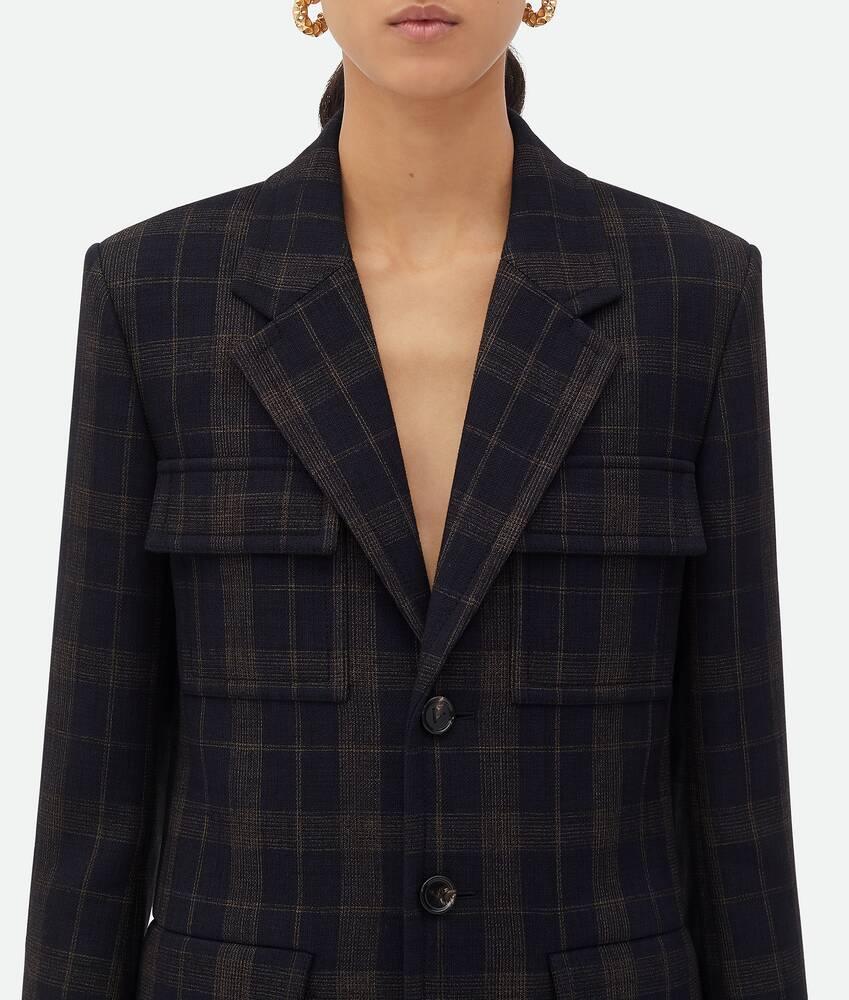 Women's Checked Cotton Mouline Jacket in Blue/brown