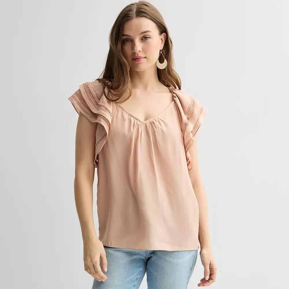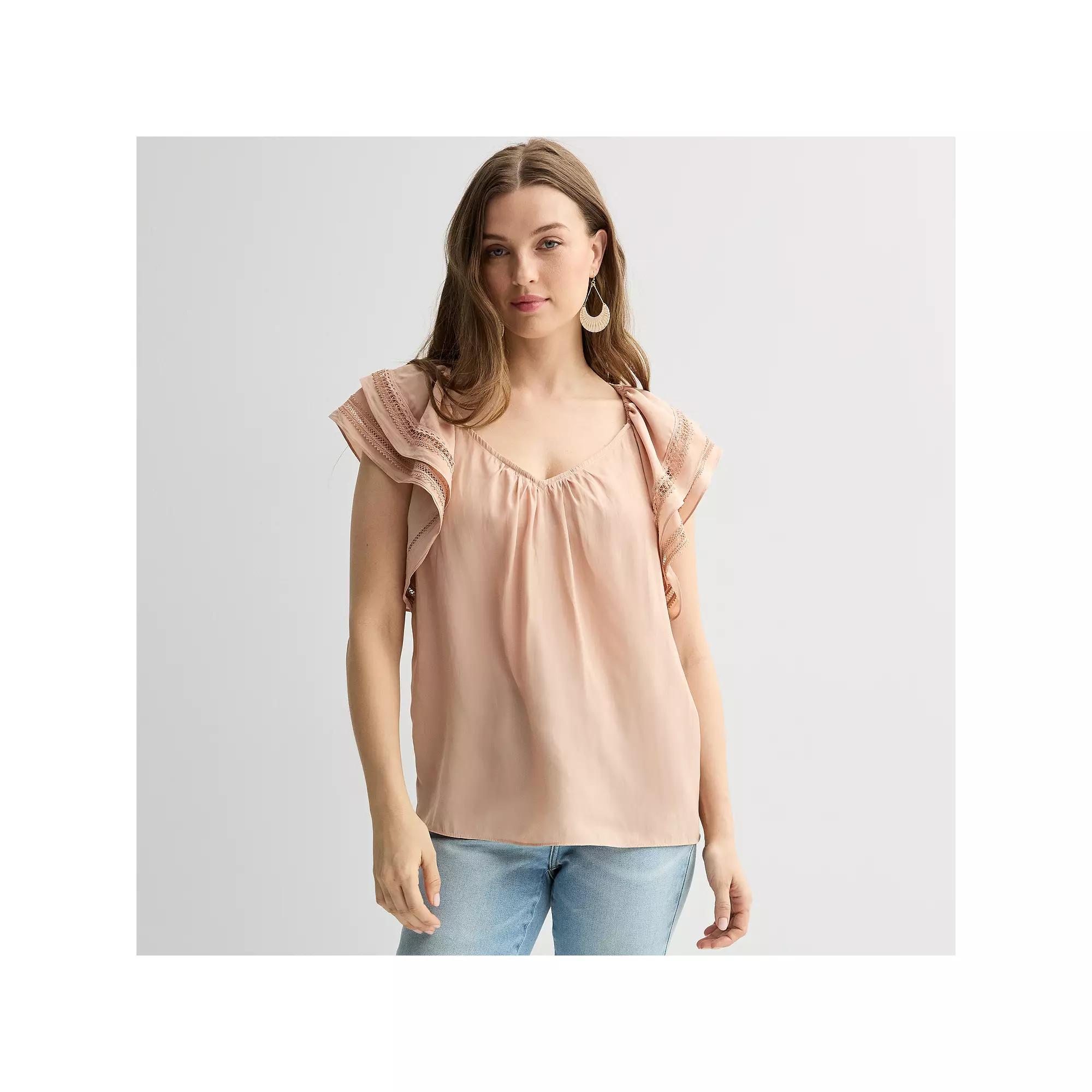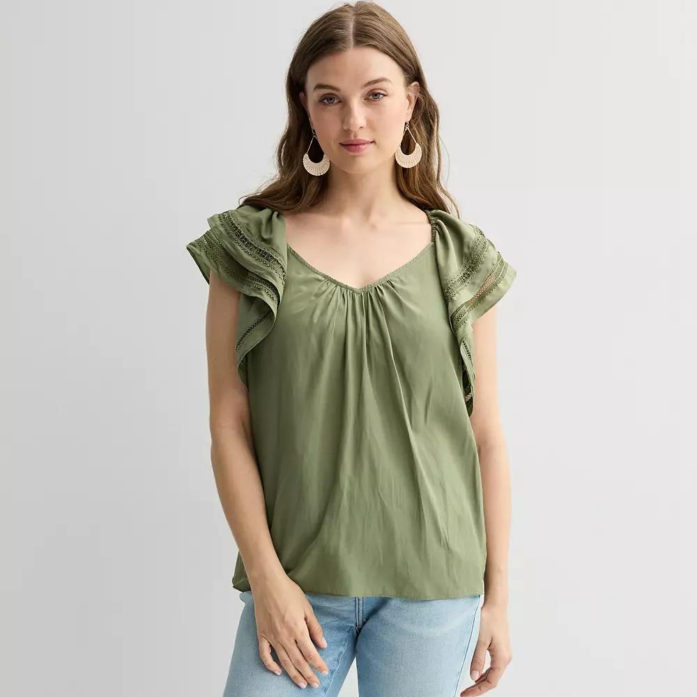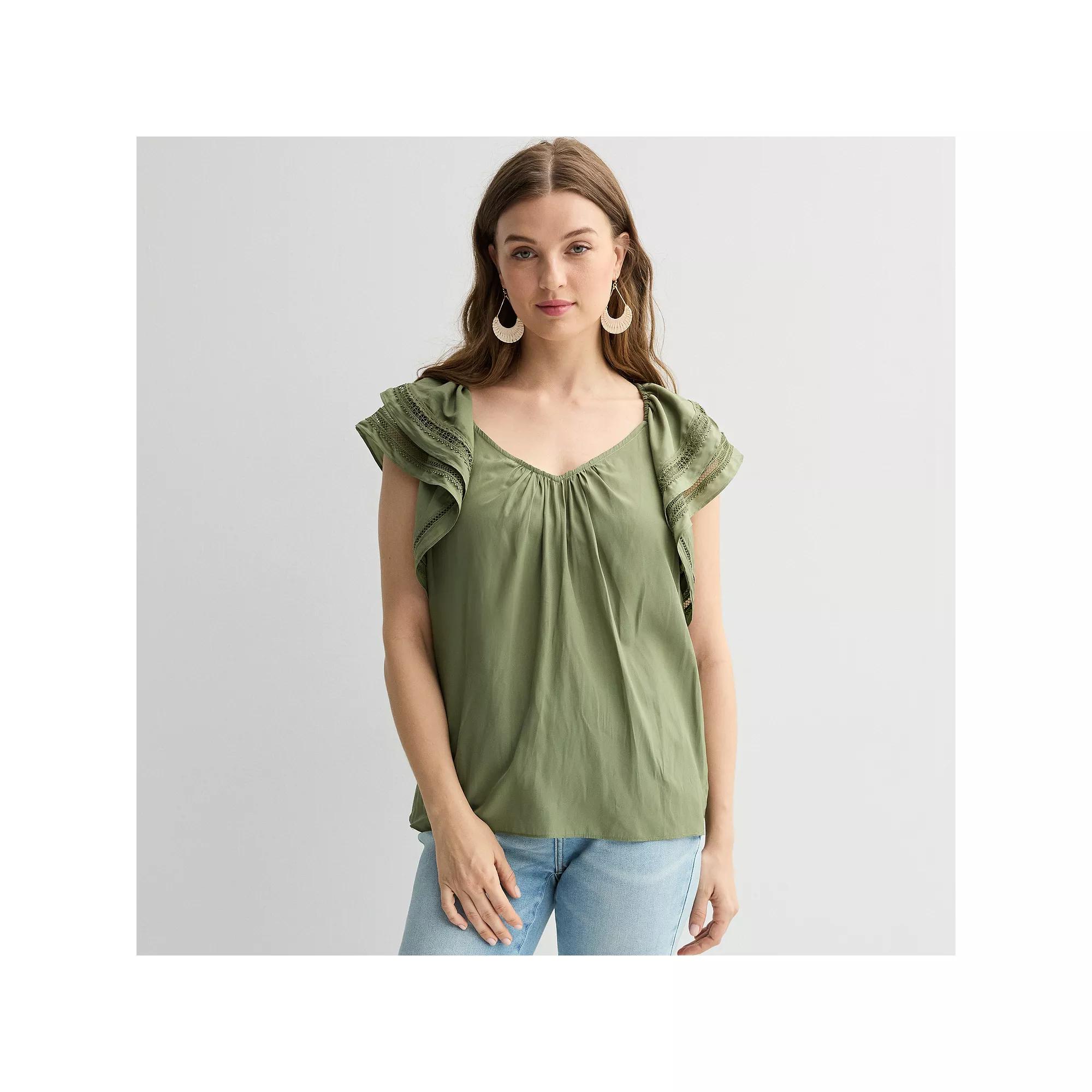 Embrace effortless charm in this breezy womens Chelsea & Theodore ruffle sleeve woven airflow blouse. Click on this WOMENS GUIDE to find the perfect fit and more!Embrace effortless charm in this breezy womens Chelsea & Theodore ruffle sleeve woven airflow blouse. Click on this WOMENS GUIDE to find the perfect fit and more!FEATURES V-neck Short ruffle sleeves Woven airflow constructionFIT & SIZING Relaxed fitFABRIC & CARE Polyester Machine wash Imported Size: Large. Color: Olive Green. Gender: female. Age Group: adult.