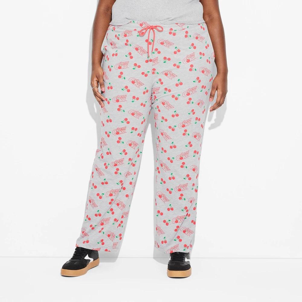 The Womens Cherry Coke Graphic Lounge Pants Gray are perfect for relaxing in style. Featuring fun Cherry Coke graphics, these pants are made from soft, comfortable fabric. With an easy fit and elastic waistband, theyre ideal for lounging at home, running errands or casual outings. The playful design adds a touch of fun to your casual wear collection.