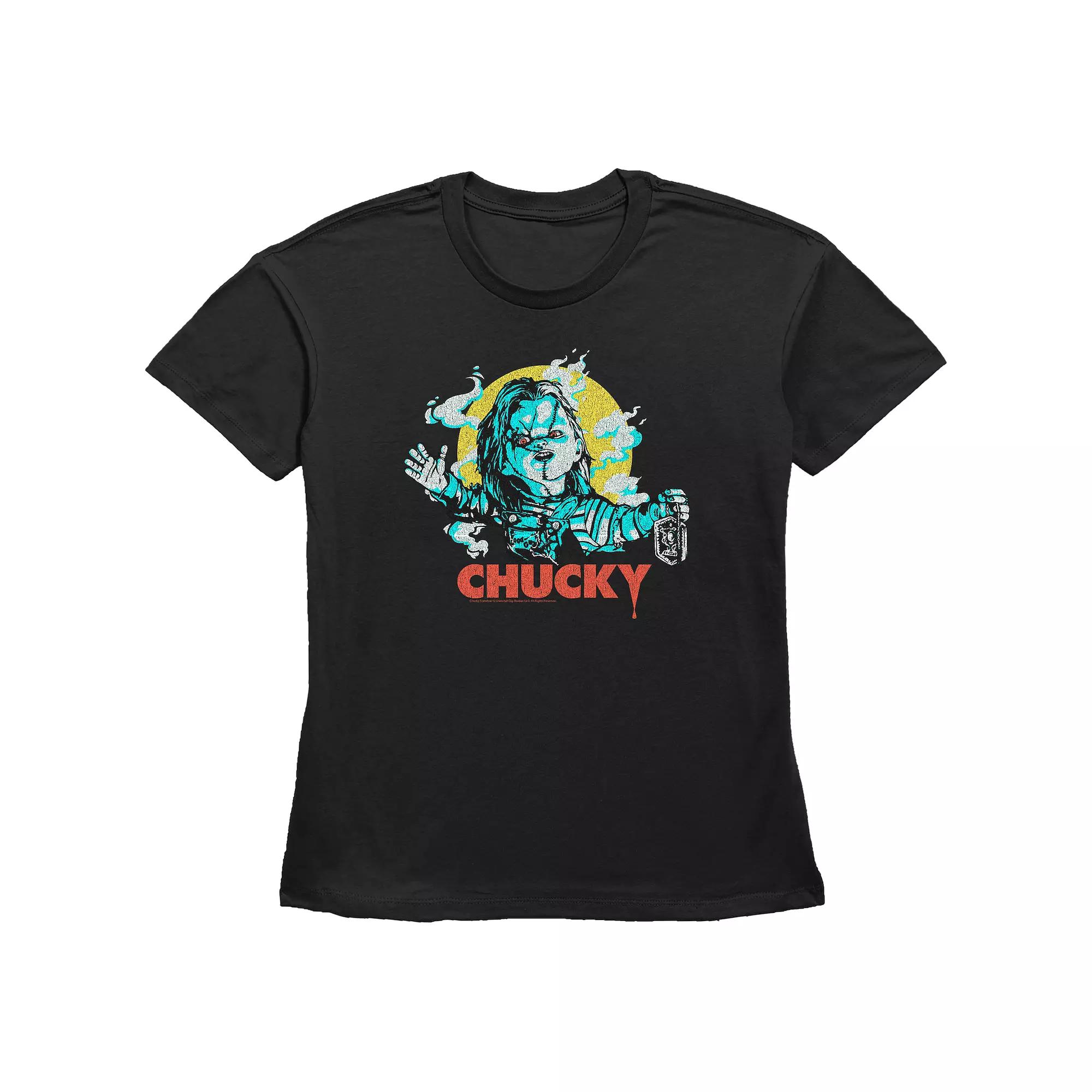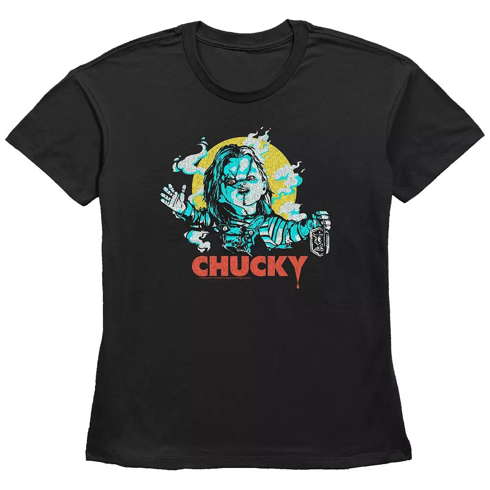 Shell love getting into the spooky spirit of the season with this Womens Chucky Is Here Graphic Tee. FEATURES Crewneck Short sleevesFABRIC & CARE Cotton Machine wash Imported Size: X Small. Color: Black. Gender: female. Age Group: adult.