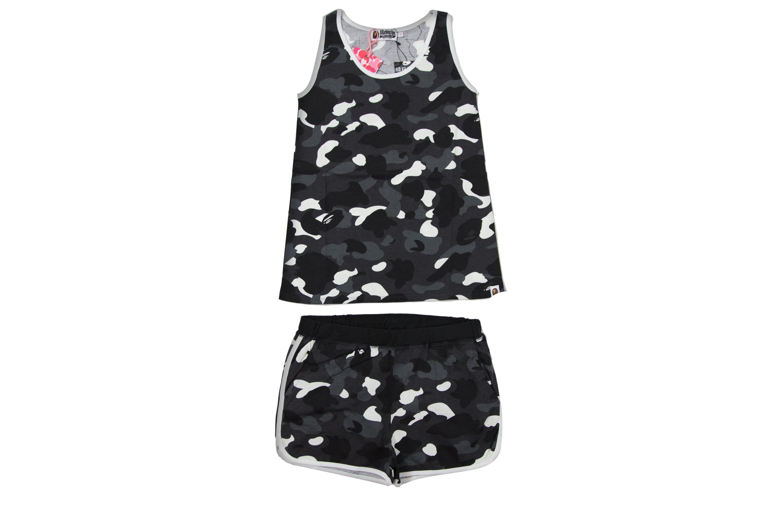 A Bathing Ape presents the City Tank Set. Featuring a camo print tank top and matching shorts that are both crafted from 100% cotton for a comfortable feel. BAPE branding details are placed throughout the set, with Ape logos on both top and bottom, the woven label finishes the look. Tank top: 100% cotton Shorts: 100% cotton Woven label BAPE branding details Ribbed neckline on tank top Elastic waistband and back pockets on shorts Style No: 001UWD302501X-BLK