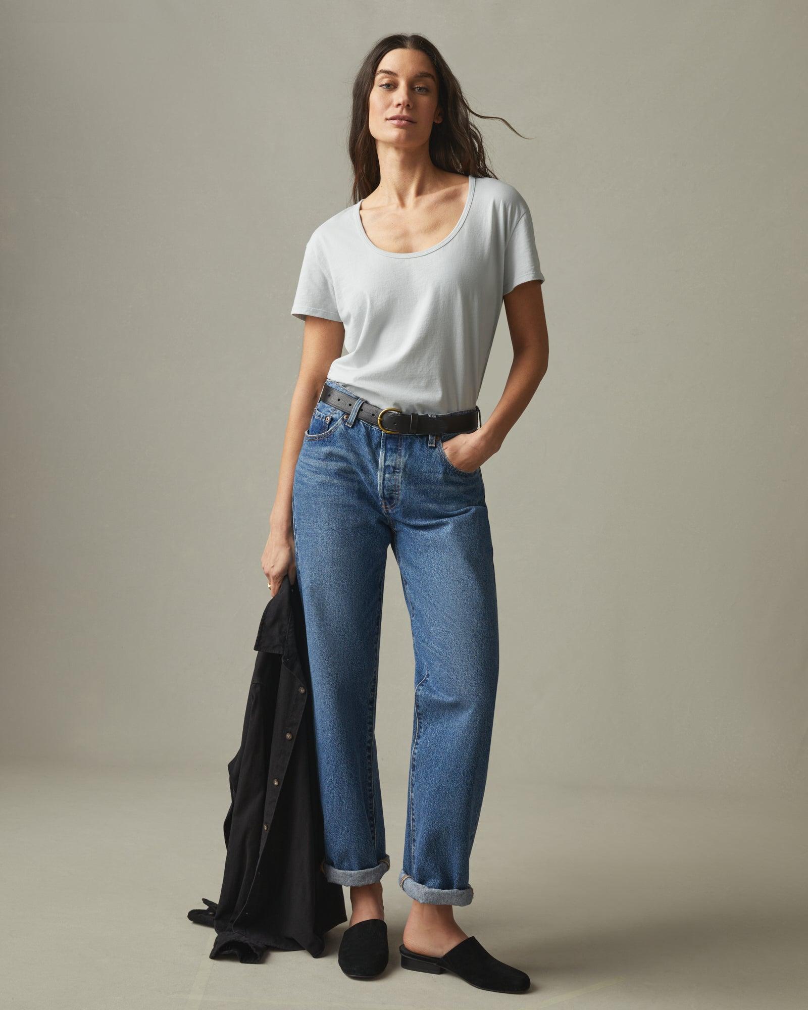 Women's Classic Cotton Scoop Tee - Pearl Blue Female