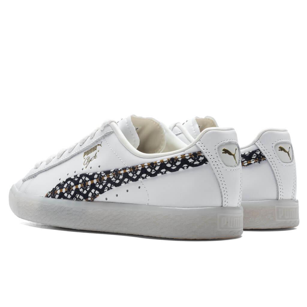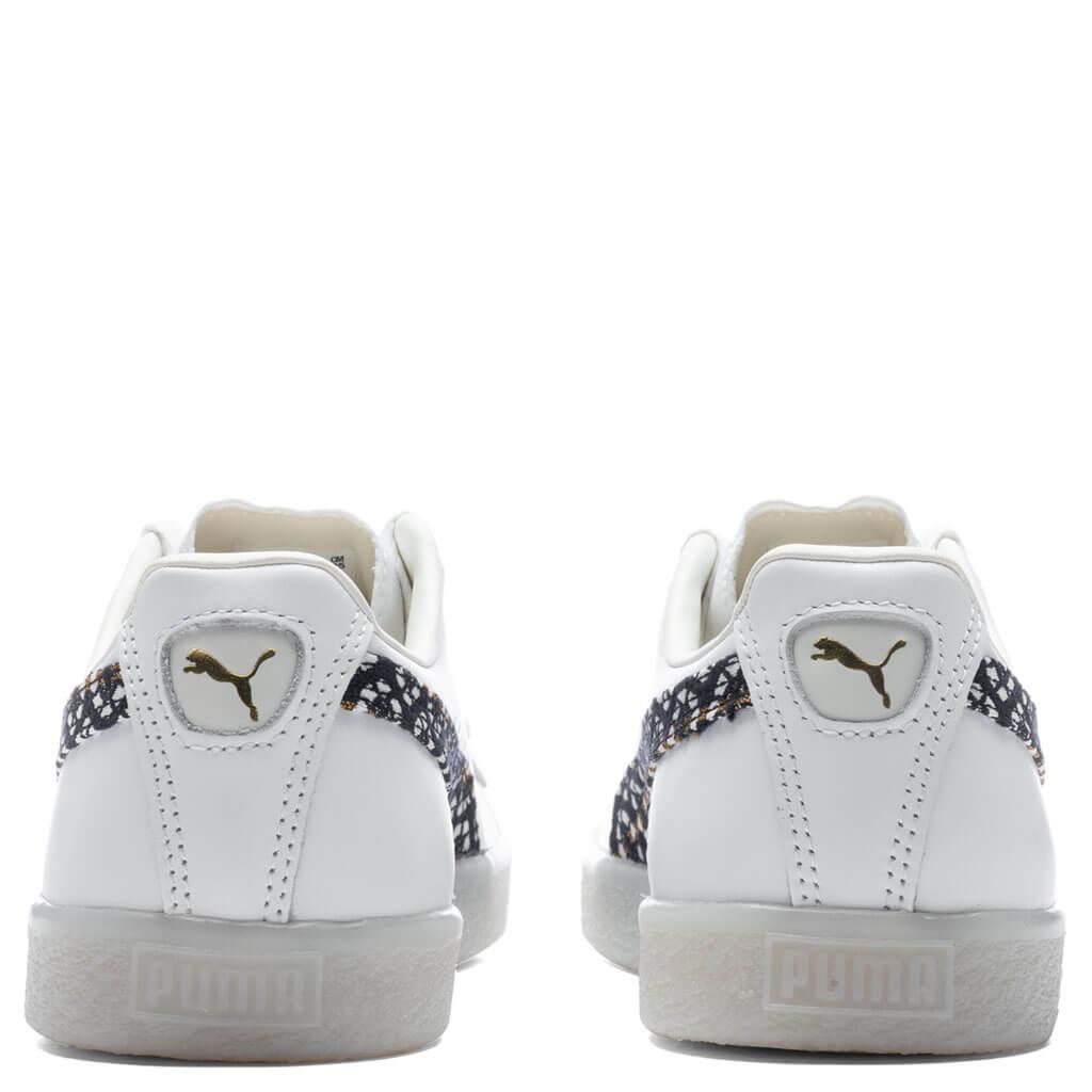 Puma’s signature Clyde receives a new iteration in this new version. Taking on a leather upper, the Formstrip is treated with a distinct textile pattern. A synthetic tongue makes an impression, while the debossed and gold-foiled Puma branding at the quarter makes an impression. The rubber outsole wraps up the design. Leather upper Lace-up front Textile Formstrip pattern Synthetic tongue Debossed/gold-foiled branding Rubber outsole All sizes are listed in U.S. Women’s sizing unless stated otherwise Style No: 39009201