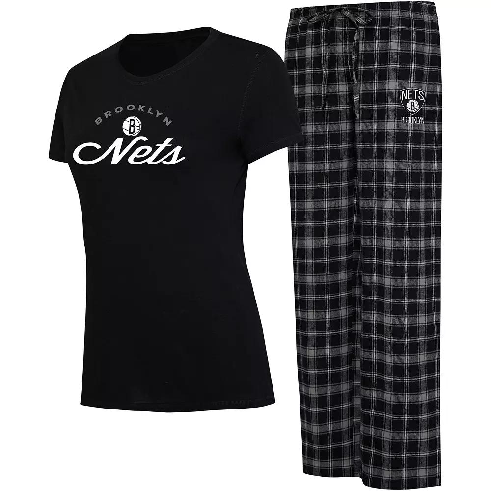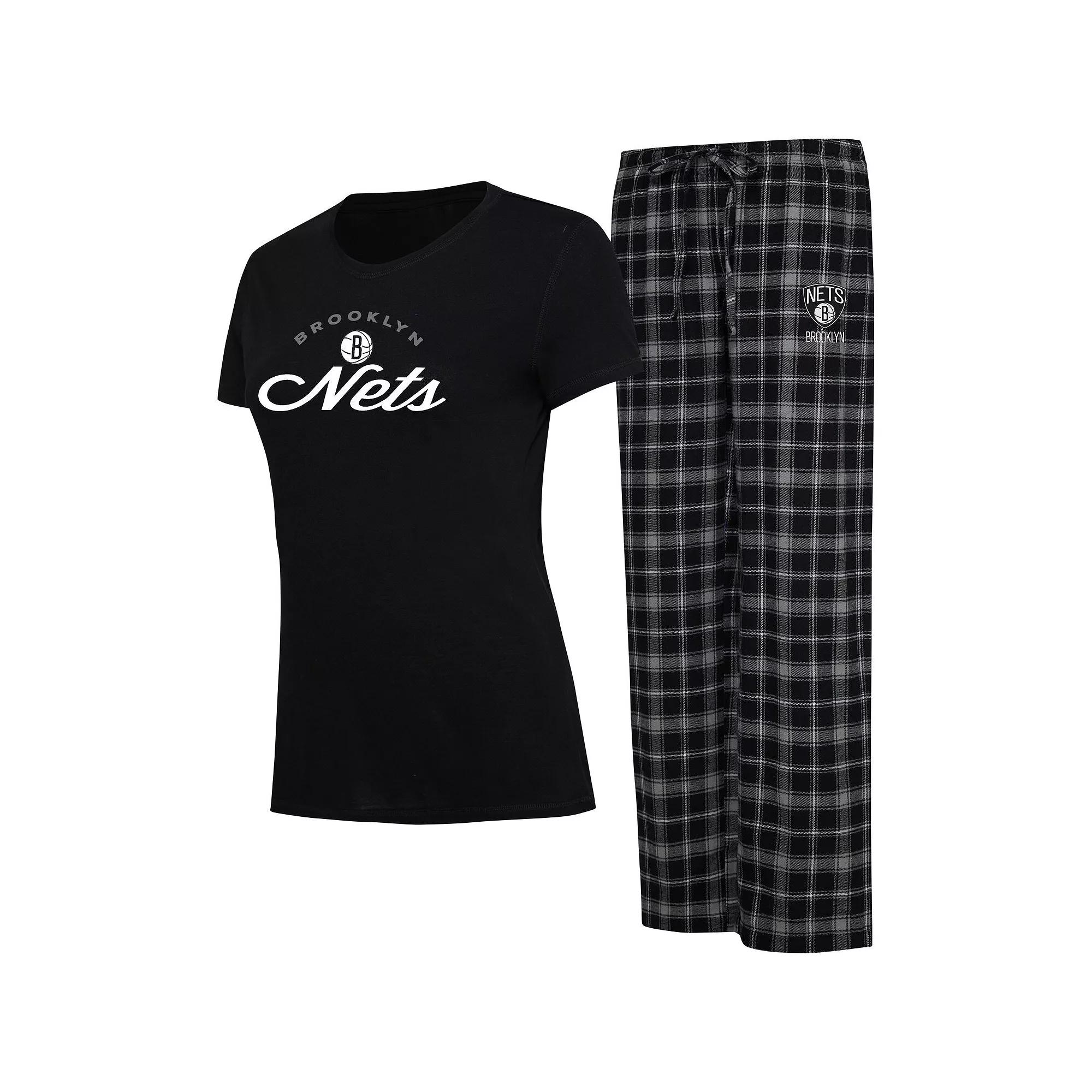 For a spirited look at bedtime, grab this Arctic Sleep set by College Concepts. It includes a tee and flannel pants decorated in signature Brooklyn Nets colors and graphics. Comfortable fabric promotes a relaxed feel so you can dream of sweet team victories.For a spirited look at bedtime, grab this Arctic Sleep set by College Concepts. It includes a tee and flannel pants decorated in signature Brooklyn Nets colors and graphics. Comfortable fabric promotes a relaxed feel so you can dream of sweet team victories.PRODUCT FEATURESOfficially licensedMachine wash, tumble dry lowWoven plaid patternScreen print graphicsBrand: College ConceptsMaterial: 65% Polyester/35% Rayon - Shirt; 60% Cotton/40% Polyester - PantsSet includes T-shirt and pantsImportedShort sleeveInseam on size S measures approx. 31Elastic waistband with drawstringEmbroidered graphicsCrew neck Color: Black. Gender: female. Age Group: adult.