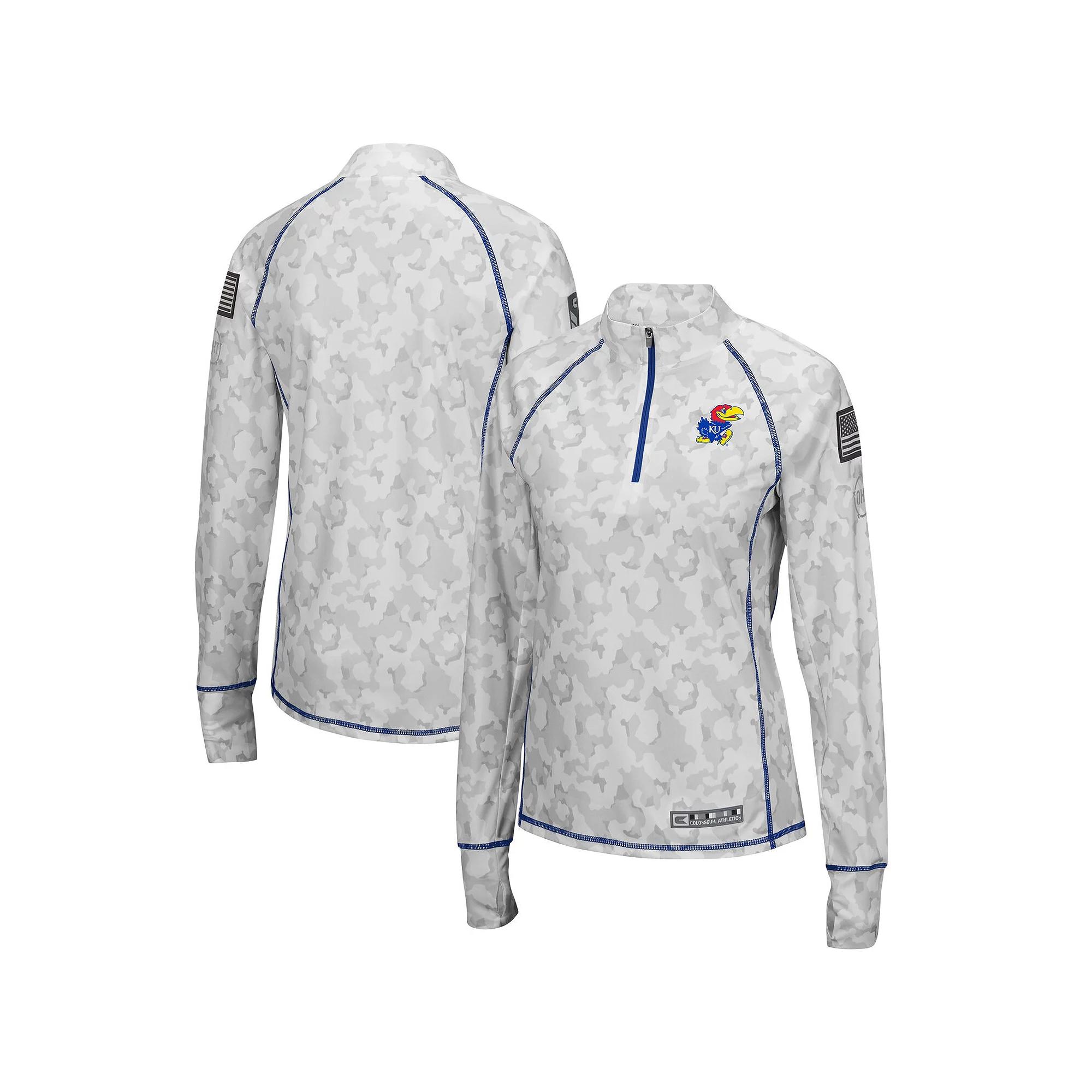 Make your look on Kansas Jayhawks game day as strong as ever in this Officer Arctic quarter-zip top from Colosseum. Its lightweight design features a distinct camo pattern, OHT Military Appreciation graphics and the Kansas Jayhawks logo accentuated by contrast-color stitching. Raglan sleeves allow for more flexible movement that helps keep you comfortable all day.Make your look on Kansas Jayhawks game day as strong as ever in this Officer Arctic quarter-zip top from Colosseum. Its lightweight design features a distinct camo pattern, OHT Military Appreciation graphics and the Kansas Jayhawks logo accentuated by contrast-color stitching. Raglan sleeves allow for more flexible movement that helps keep you comfortable all day.PRODUCT FEATURES Color: Green. Gender: female. Age Group: adult.