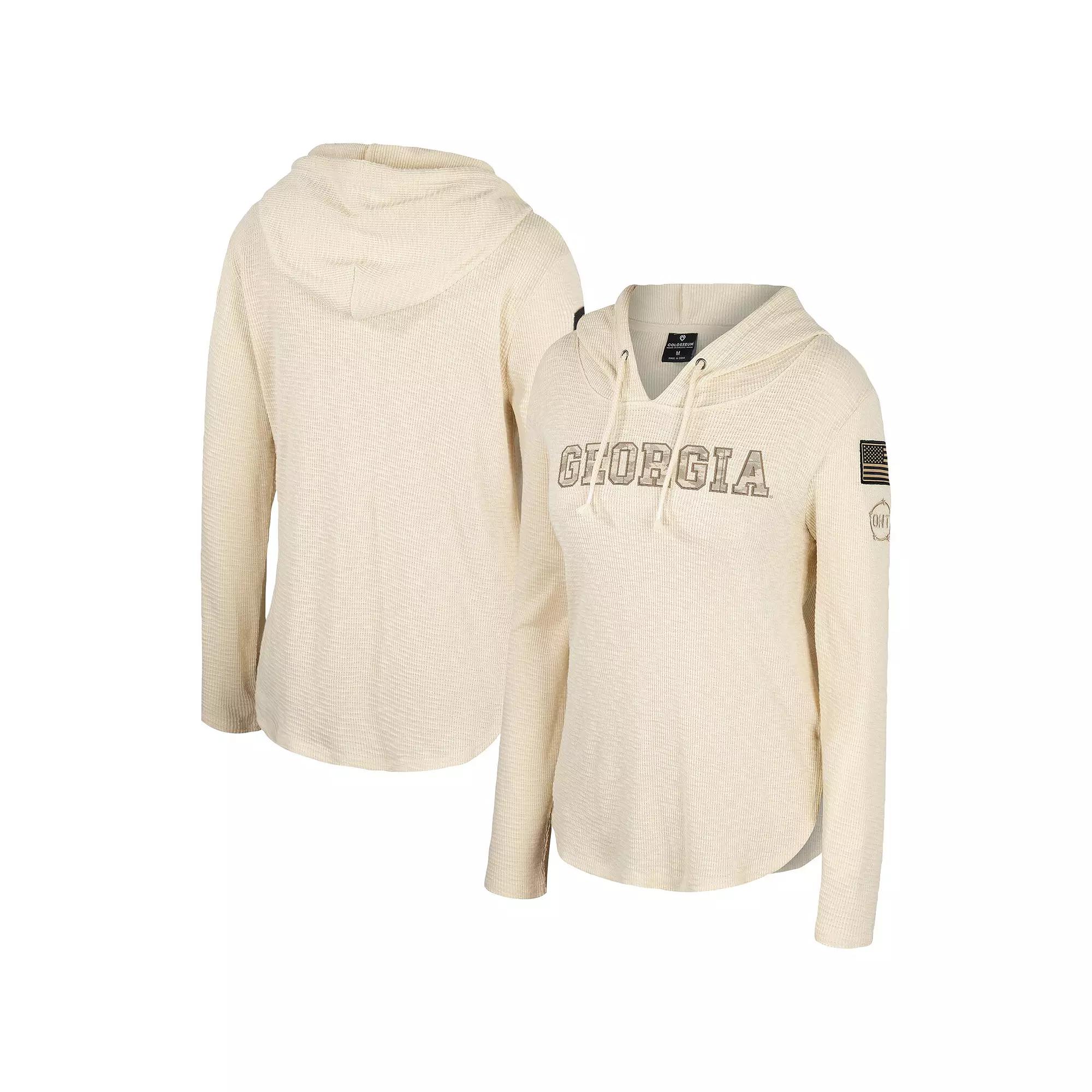 Combine your love for the Georgia Bulldogs with your appreciation for all the military does with this sweet OHT Military Appreciation Casey hoodie T-shirt from Colosseum. It features iconic Georgia Bulldogs graphics across the chest and OHT's logo on the side. The raglan sleeves will give you enhanced mobility, while the spacious hoodie will ensure you stay comfortable all day long. Hooded. Machine wash with garment inside out, tumble dry low. Embroidered graphics. Imported. Rounded bottom hem. Material: 100% Cotton. Brand: Colosseum. Officially licensed. Long sleeve. Color: Beige. Gender: female. Age Group: adult.