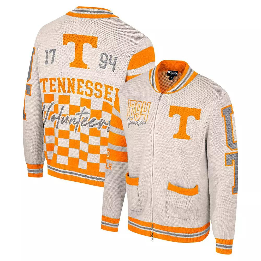 Wrap yourself in Tennessee Volunteers spirit and cozy comfort with this Colosseum Jacquard Full-Zip Sweater. This cozy sweater features woven knit team graphics on the front, back, and sleeves, making it clear that you cheer for the Vols. Plus, with its heavyweight cotton construction, this full-zip sweater will keep you warm and comfortable during those chilly game days.Wrap yourself in Tennessee Volunteers spirit and cozy comfort with this Colosseum Jacquard Full-Zip Sweater. This cozy sweater features woven knit team graphics on the front, back, and sleeves, making it clear that you cheer for the Vols. Plus, with its heavyweight cotton construction, this full-zip sweater will keep you warm and comfortable during those chilly game days.PRODUCT FEATURESFull ZipMachine wash, dry flatLong sleeveBrand: ColosseumOfficially licensedRib-knit striping on cuffs, collar and waist hemImportedMaterial: 100% CottonStand-up collarTwo front pocketsHeavyweight sweater suitable for cold temperaturesWoven knit team graphics on front, back and on sleevesEmbroidered fabric appliques Color: Beige. Gender: female. Age Group: adult.