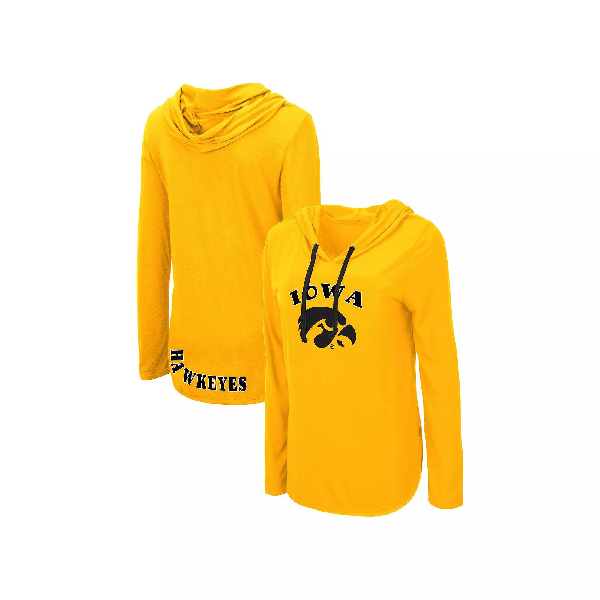 Showcase your unique sense of style and favorite team when you grab this Iowa Hawkeyes My Lover hooded T-shirt from Colosseum. The captivating design is sure to make your fandom plain to see wherever you choose to wear it. Comfortable and fashionable, pairing this lightweight tee with other Iowa Hawkeyes gear is sure to kick your wardrobe up a notch. Hooded. Material: 65% Polyester/35% Rayon. Brand: Colosseum. Machine wash, tumble dry low. Lightweight feel. Sizing Tip: Product runs small. We recommend ordering one size larger than you normally wear. Imported. Long sleeve. Officially licensed. Screen print graphics. Rounded hem. Color: Gold. Gender: female. Age Group: adult. Material: COTTON.