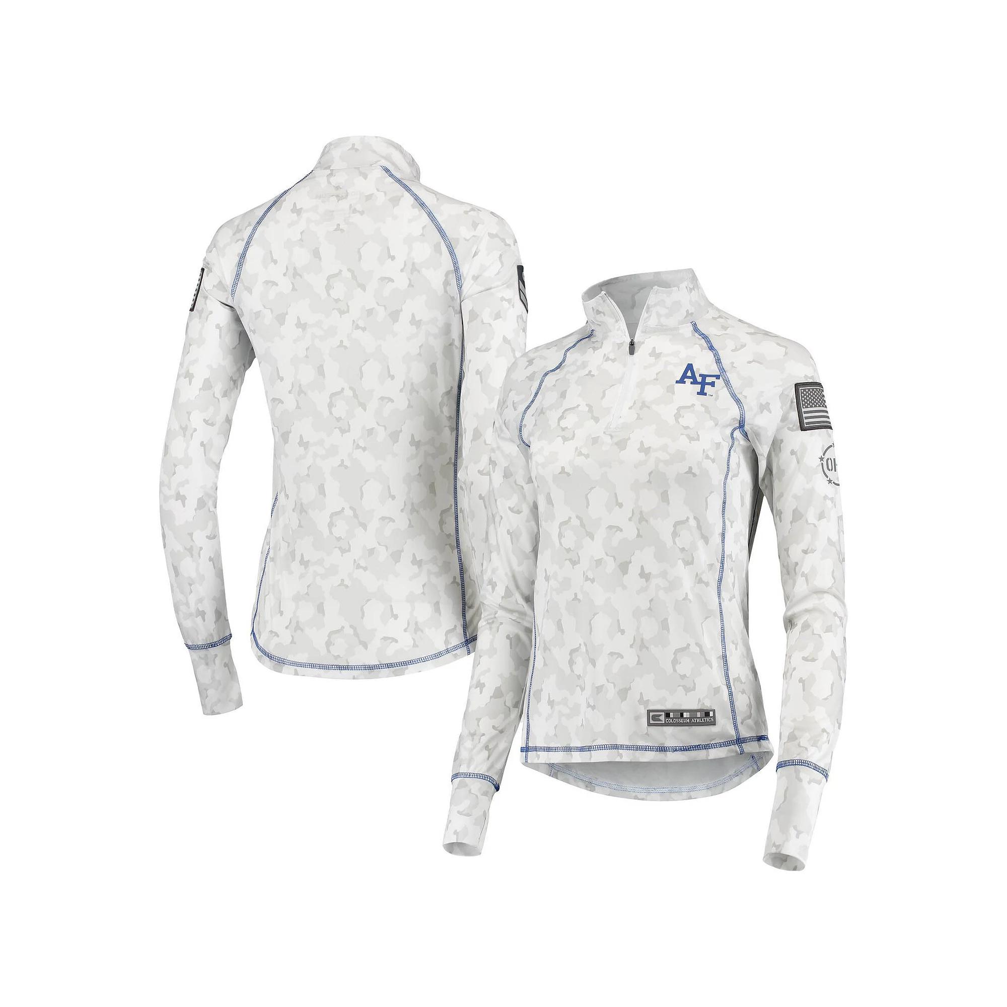No matter where you watch the next Air Force Falcons game, make sure your look is as strong as ever in this OHT Military Appreciation Officer Arctic Camo 1/4-zip jacket. This piece of Colosseum gear features a distinct camo design and the Air Force Falcons logo is proudly displayed on the chest. Sport this over your go-to team tee for a complete look you will be proud to show off this season.No matter where you watch the next Air Force Falcons game, make sure your look is as strong as ever in this OHT Military Appreciation Officer Arctic Camo 1/4-zip jacket. This piece of Colosseum gear features a distinct camo design and the Air Force Falcons logo is proudly displayed on the chest. Sport this over your go-to team tee for a complete look you will be proud to show off this season.PRODUCT FEATURESCamo design may vary with each jacketRubberized heat-sealed brand tag at hemOperation Hat Trick (OHT) generates awareness and support for the recovery of wounded service members and veterans through the sale of branded merchandise and products. Proceeds are donated to select organizations that support the OHT mission.Rounded droptail hem1/4-ZipEmbroidered fabric appliquesSublimated camo patternMaterial: 100% PolyesterLong sleeveMachine wash, tumble dry lowTagless CollarOfficially licensedImportedBrand: ColosseumLightweight jacket suitable for mild temperaturesScreen print graphicsMock neckContrast-colored flatlock stitchingRaglan sleevesThumbholes at cuffs Color: White. Gender: female. Age Group: adult.