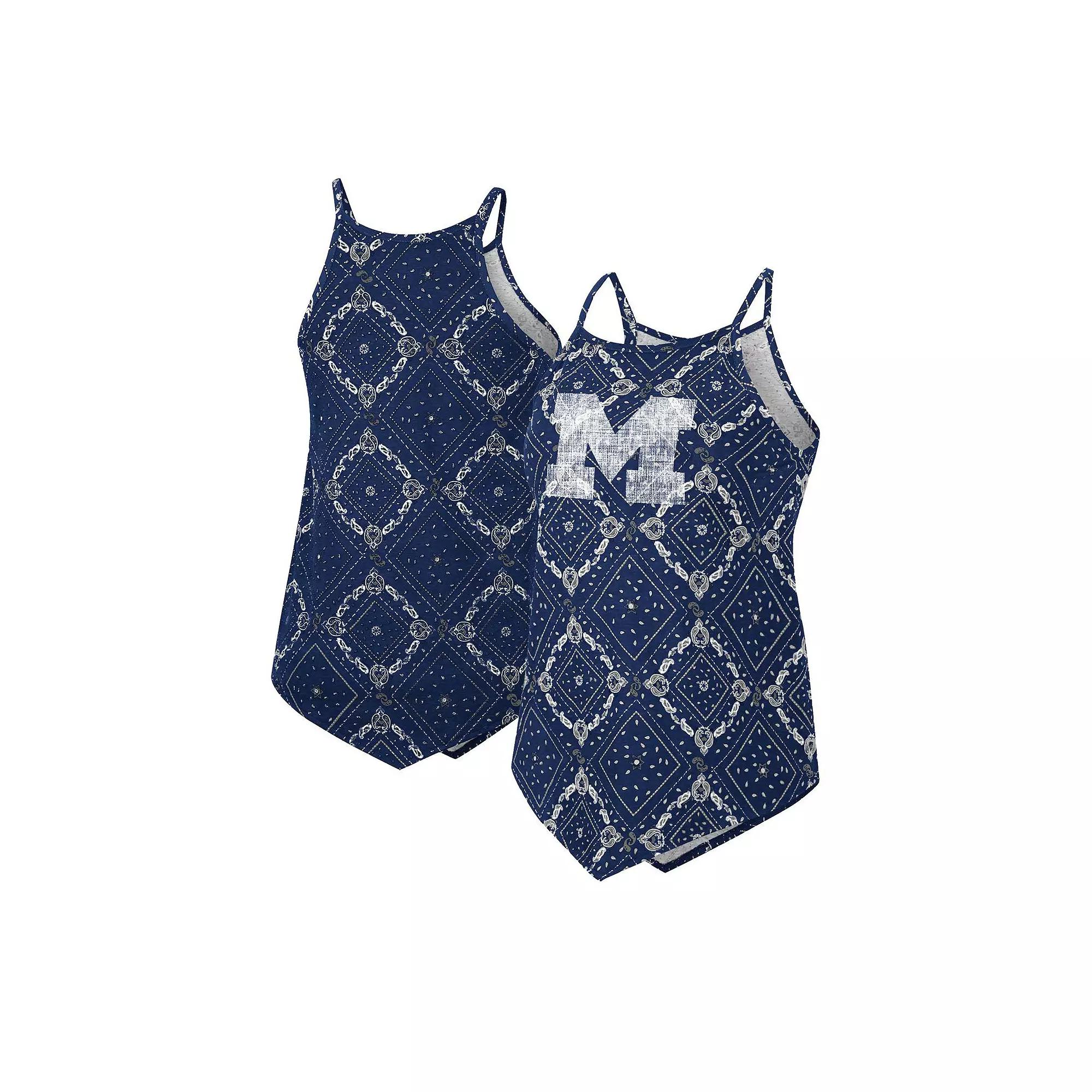 Add a relaxed finish to any fan look with this Michigan Wolverines tank top. Made in collaboration with Colosseum and Wrangler, this top features distressed team graphics over a bandana design. Whether enjoying a sunny day at the stadium or at home, give any look some school spirit with this Michigan Wolverines tank.