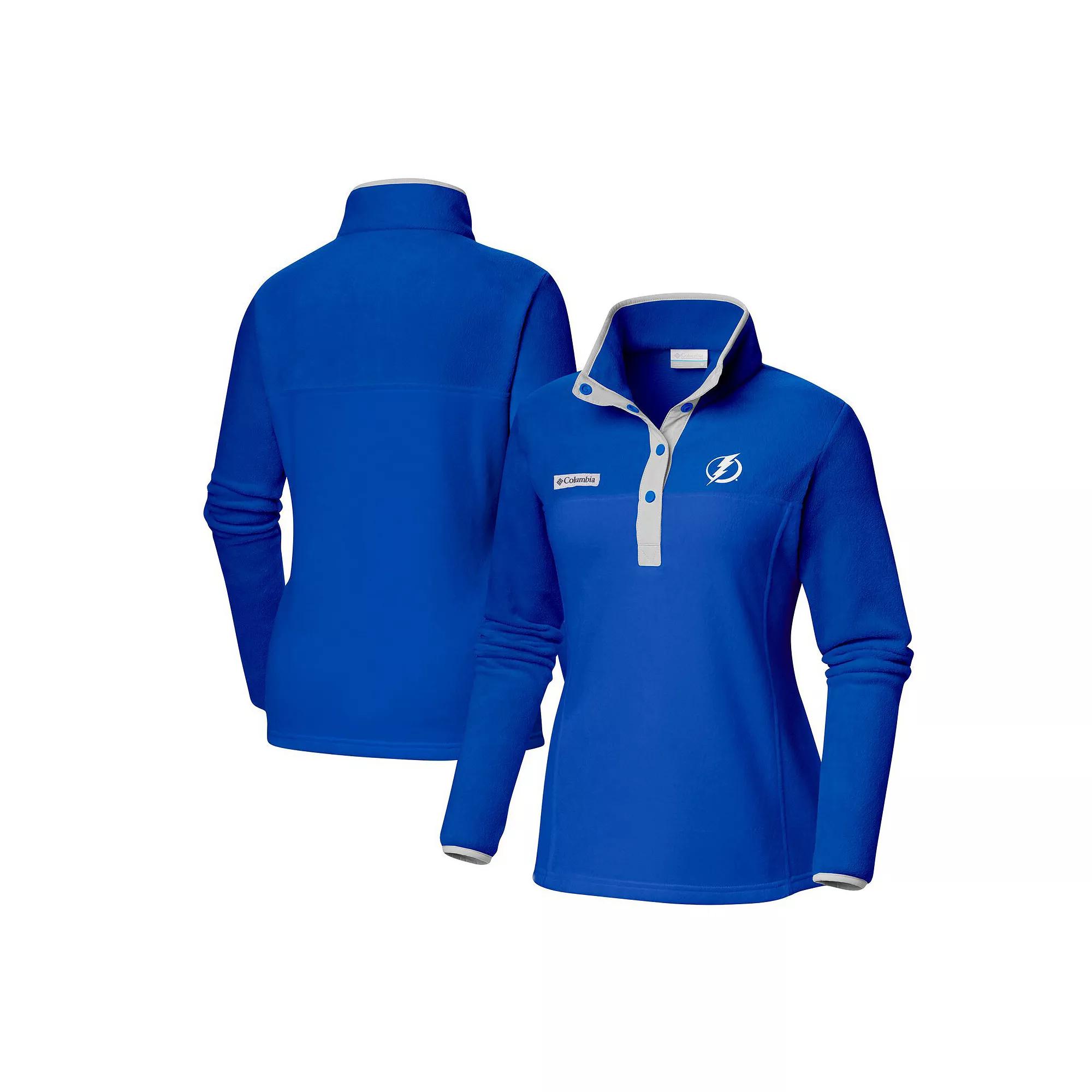 Take cold weather head on by wearing this Tampa Bay Lightning Benton Springs half-snap jacket from Columbia. Its innovatively designed plush fleece fabric with a touch of stretch creates an exceptionally cozy feel. Elastic trim helps hold in heat as well, so you stay nice and warm in this Tampa Bay Lightning gear. Midweight jacket suitable for moderate temperatures Pullover Imported Olympic collar Officially licensed Elastic cuffs Material: 100% Polyester Long sleeve Embroidered graphics Brand: Columbia MTR (maximum thermal retention) fleece fabric Four snap placket