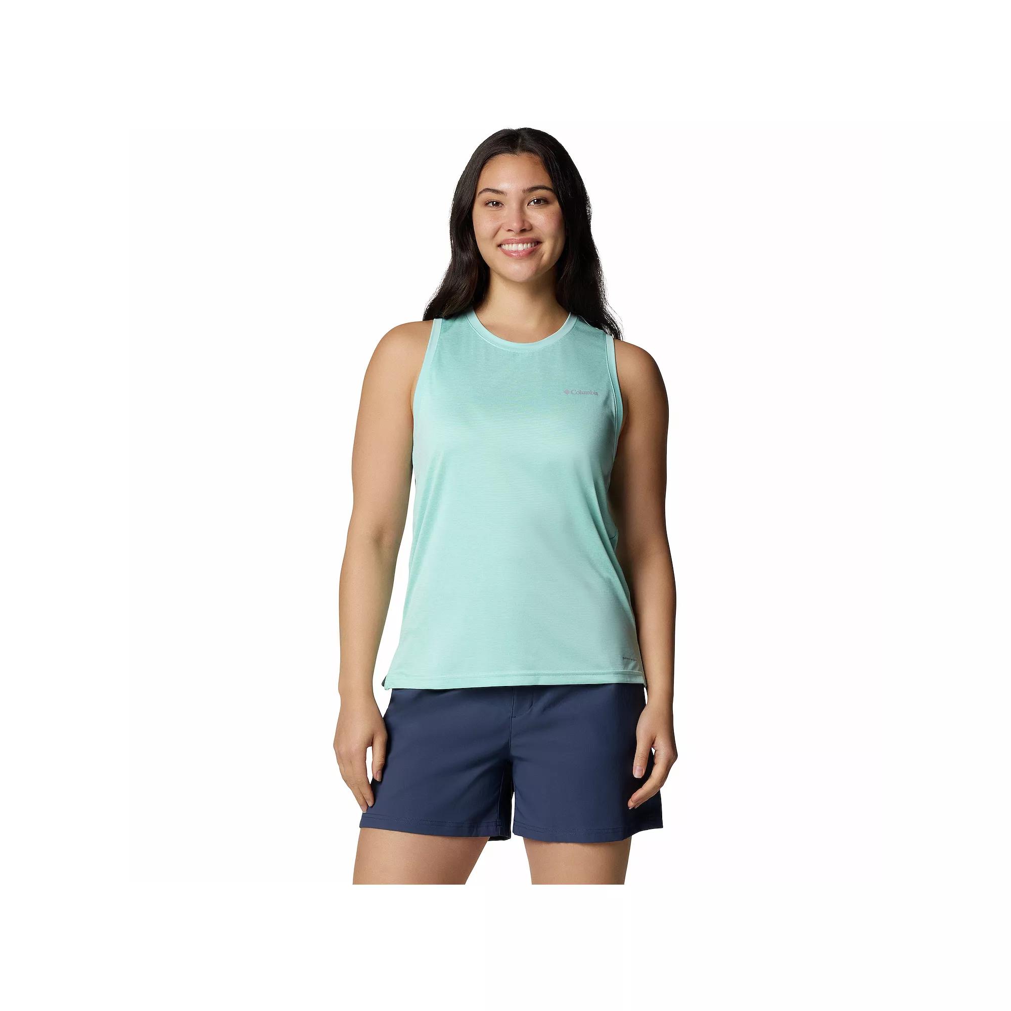 Youll love this lightweight Womens Columbia Bluevista Hill Omni-WICK Tank Top perfect for hiking and enjoying the outdoors. Click on this WOMENS GUIDE to find the perfect fit and more!Youll love this lightweight Womens Columbia Bluevista Hill Omni-WICK Tank Top perfect for hiking and enjoying the outdoors. Click on this WOMENS GUIDE to find the perfect fit and more!FEATURES Omni-WICK moisture-wicking technology Crewneck Sleeveless Vents at side hem Drop tail hem Jacquard knit constructionFIT & SIZING Regular fit 26-in. length from shoulder to hemFABRIC & CARE Polyester, elastane Machine wash Imported Size: Xxl. Color: Spray. Gender: female. Age Group: adult.