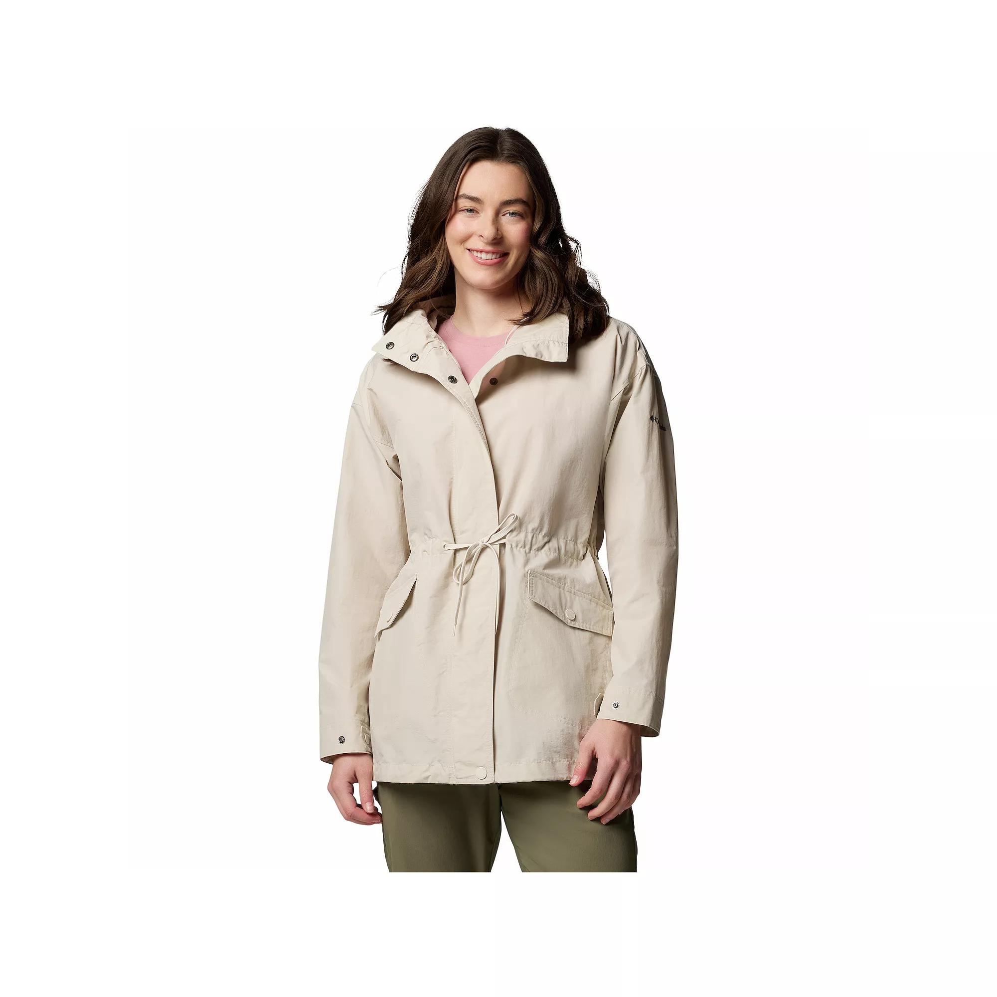 The womens Columbia Pardon My Jacket hooded rain coat is sure to be your next go to outerwear choice!Click on this WOMENS GUIDE to find the perfect fit and more!The womens Columbia Pardon My Jacket hooded rain coat is sure to be your next go to outerwear choice!Click on this WOMENS GUIDE to find the perfect fit and more!FEATURES Attached hood with adjustable drawcord 2-way center front zipper closure Long sleeves with adjustable cuffs Drawcord adjustable waist 2 front hand pockets with snap closure Water-resistant technology Stretch woven construction Partially linedFIT & SIZING Regular fit 30-in. length from shoulder to hem Designed to hit just below the waist LightweightFABRIC & CARE Body: polyester nutshell Taslan Lining: 100% recycled polyester Trim: polyester nutshell Taslan Machine wash ImportedRESPONSIBLE Contains recycled polyester Size: Medium. Color: Dark Stone. Gender: female. Age Group: adult.