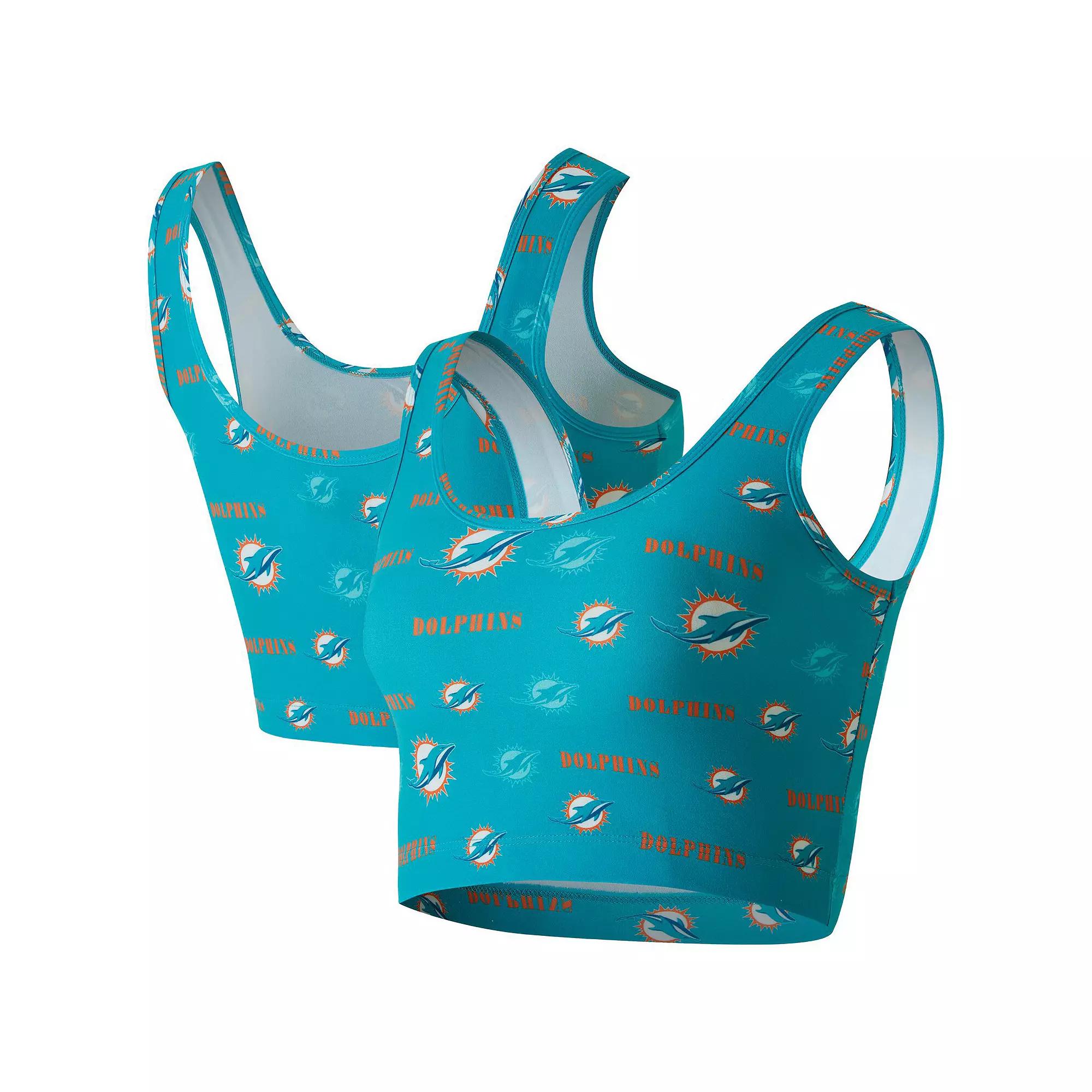 Add team spirit to every layer of your outfit with this Miami Dolphins Mosaic Allover Print Bralette by Concepts Sport. The classic silhouette offers the perfect balance of comfort and support, making it an ideal choice for wearing under your favorite jersey. The soft, stretchy material gives this Miami Dolphins bralette a comfortable feel all day. Imported. Officially licensed. Machine wash, tumble dry low. Brand: Concepts Sport. Classic bralette silhouette gives you the right amount of comfort and support. Ideal for layering. Team details printed all over jersey fabric. Material: 92% Polyester/8% Spandex. Color: Turq A. Gender: female. Age Group: adult. Material: COTTON.