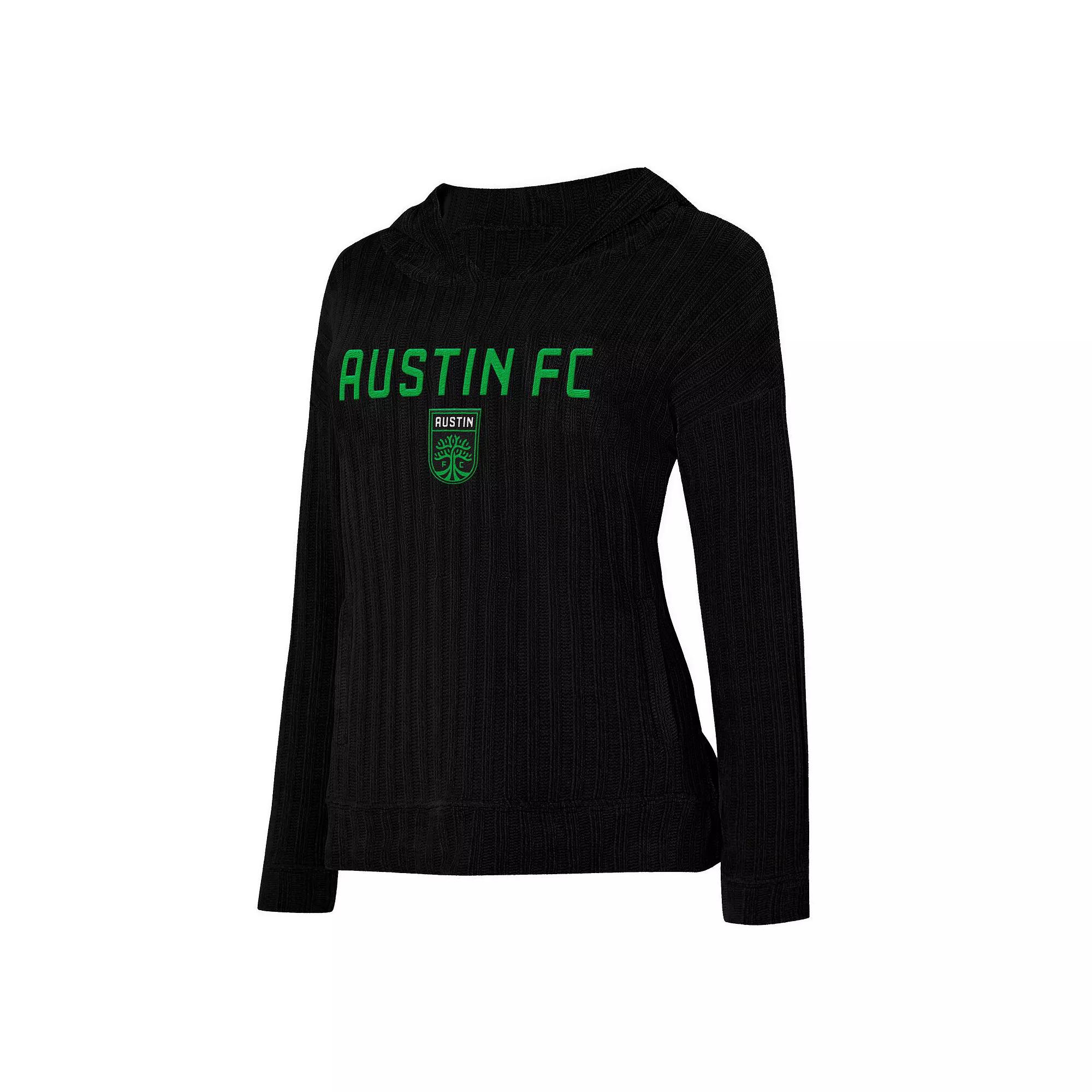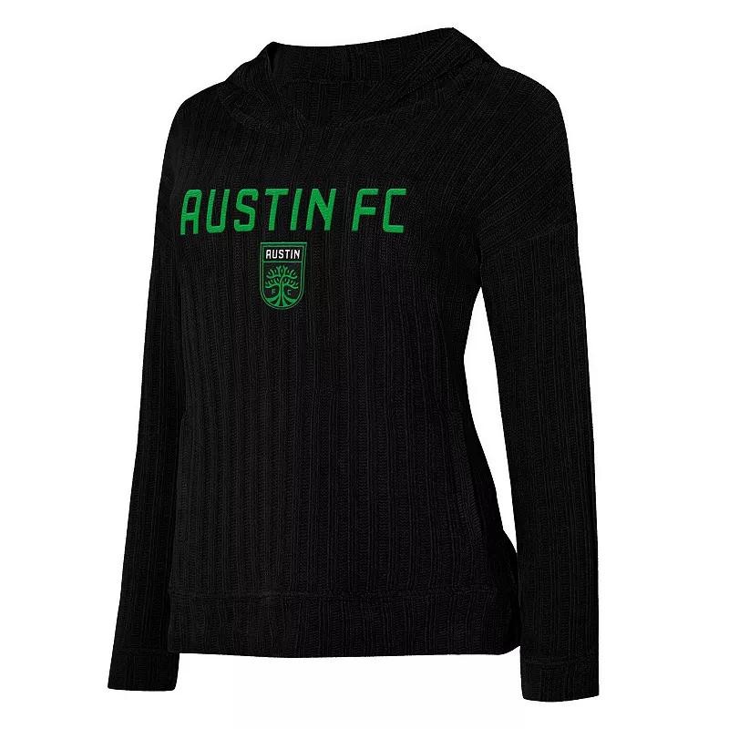 Cozy comfort scores the game-winning goal with this Austin FC Linger Hooded top from Concepts Sport. It features the club name and Austin FC crest embroidered on a knit design that creates a textured look. Chenille fabric adds an extra layer of softness and warmth.