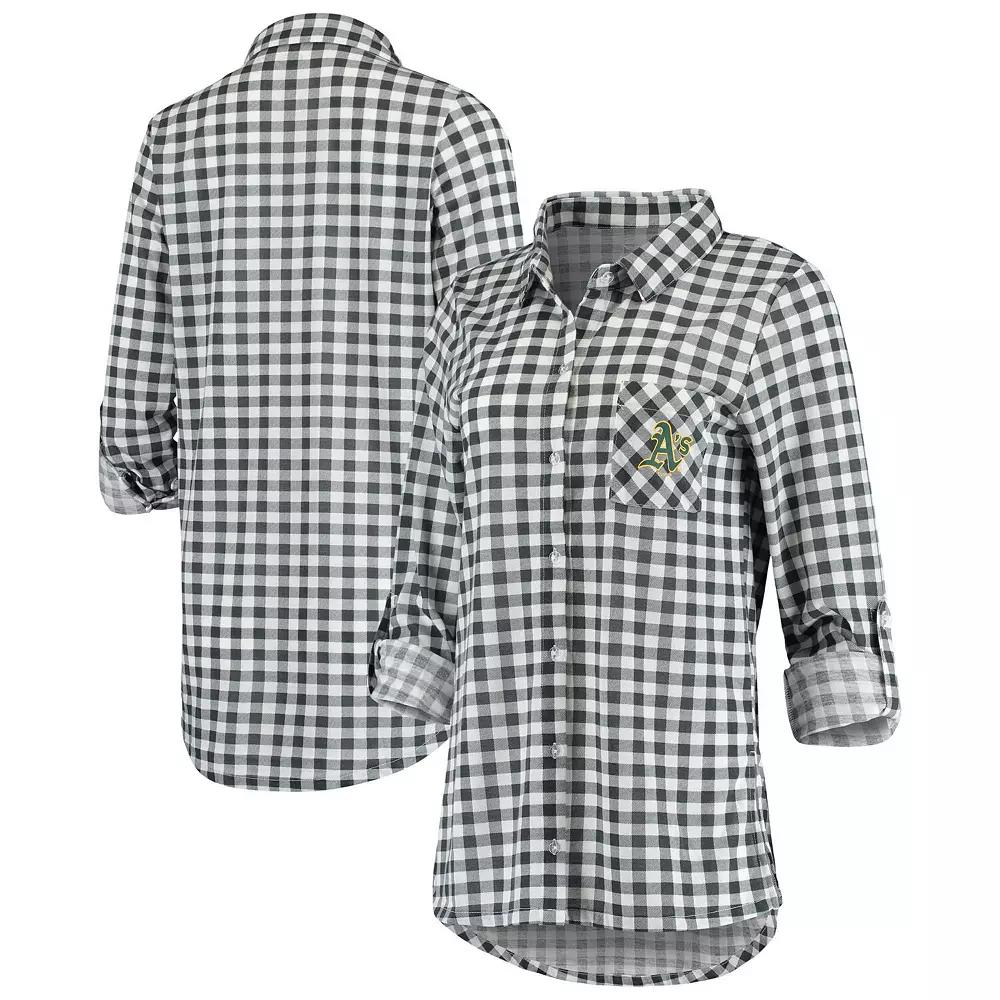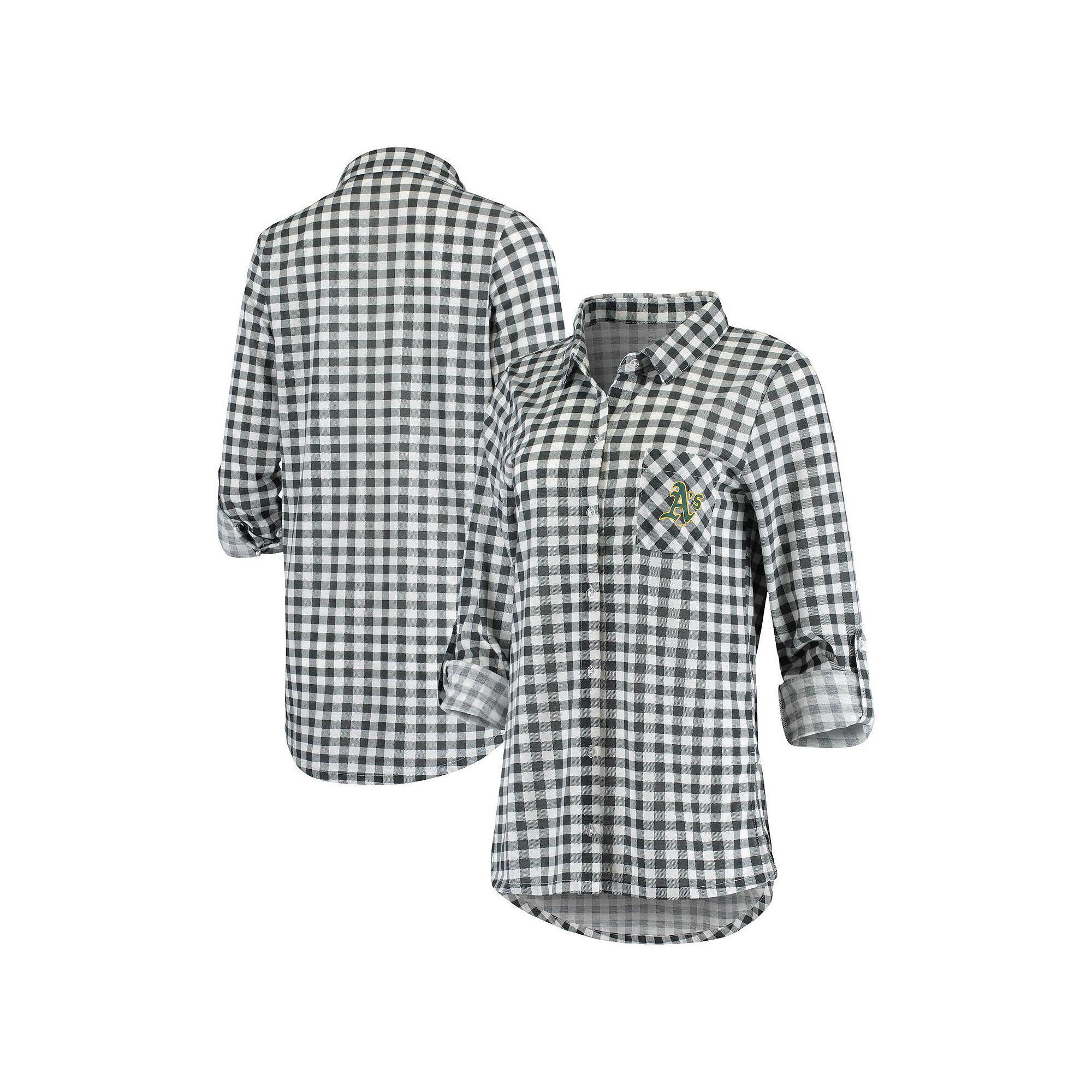 Relax after a long day in this Wanderer button-up nightshirt from Concepts Sport. It features the Oakland Athletics logo and a classic plaid pattern on extra-soft fabric. Youll feel ready to unwind after you put on this Oakland Athletics top.Relax after a long day in this Wanderer button-up nightshirt from Concepts Sport. It features the Oakland Athletics logo and a classic plaid pattern on extra-soft fabric. Youll feel ready to unwind after you put on this Oakland Athletics top.PRODUCT FEATURESOfficially licensedMachine wash, tumble dry lowMaterial: 100% PolyesterLong sleeveFull-button frontScreen print graphicsImportedRoll-up sleeve with button tabWoven plaid patternBrand: Concepts SportRounded hemChest pocket Size: M. Color: Charcoal. Gender: female. Age Group: adult.