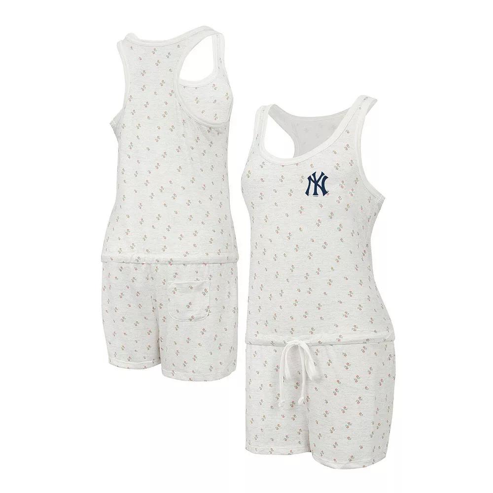 Show your love for the New York Yankees in a charming and trendy way with this Gardner romper. Made by Concepts Sport, it features an allover floral pattern and the New York Yankees logo on soft, stretchy Hacci knit fabric. An adjustable waistband lets you pick the most comfortable fit. Imported. Material: 94% Polyester/6% Spandex. Brand: Concepts Sport. Machine wash, tumble dry low. One back pocket. Officially licensed. Screen print graphics. Racerback. Elastic waist with drawstring. Size: 2X. Color: Beige. Gender: female. Age Group: adult. Material: COTTON.