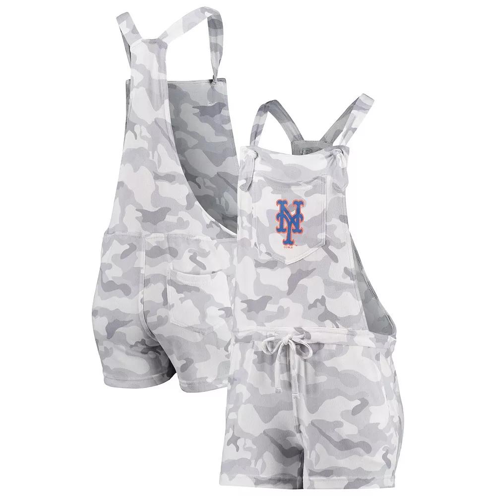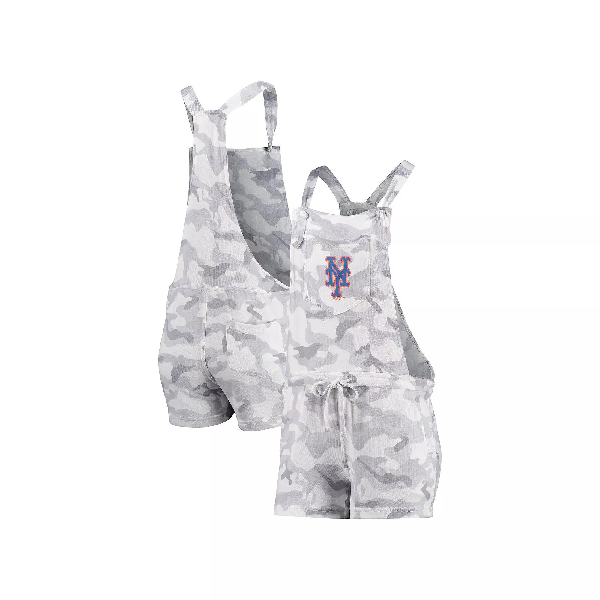 Create a chic look on those extra-hot New York Mets game days with this Camo Overall romper from Concepts Sport. It features understated New York Mets graphics printed on soft, stretchy fabric and an adjustable drawstring for the most comfortable fit. Plus, multiple pockets keep personal items close at hand.Create a chic look on those extra-hot New York Mets game days with this Camo Overall romper from Concepts Sport. It features understated New York Mets graphics printed on soft, stretchy fabric and an adjustable drawstring for the most comfortable fit. Plus, multiple pockets keep personal items close at hand.PRODUCT FEATURESTwo front slip pocketsOne back slip pocketImportedMaterial: 94% Polyester/6% SpandexRacerbackScreen print graphicsSublimated patternOfficially licensedMachine wash, tumble dry lowInseam on size S measures approx. 3One chest pocketShoulder straps with knotted tiesAdjustable drawstring at waistBrand: Concepts Sport Size: XL. Color: Grey. Gender: female. Age Group: adult.
