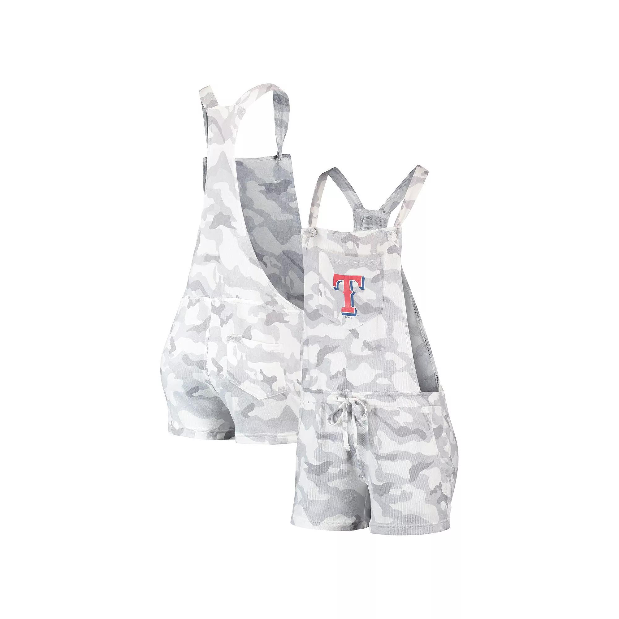 Create a chic look on those extra-hot Texas Rangers game days with this Camo Overall romper from Concepts Sport. It features understated Texas Rangers graphics printed on soft, stretchy fabric and an adjustable drawstring for the most comfortable fit. Plus, multiple pockets keep personal items close at hand.Create a chic look on those extra-hot Texas Rangers game days with this Camo Overall romper from Concepts Sport. It features understated Texas Rangers graphics printed on soft, stretchy fabric and an adjustable drawstring for the most comfortable fit. Plus, multiple pockets keep personal items close at hand.PRODUCT FEATURESAdjustable drawstring at waistBrand: Concepts SportImportedInseam on size S measures approx. 3''Machine wash, tumble dry lowMaterial: 94% Polyester/6% SpandexOfficially licensedOne back slip pocketOne chest pocketRacerbackScreen print graphicsShoulder straps with knotted tiesSublimated patternTagless CollarTwo front slip pockets Size: 2X. Color: Grey. Gender: female. Age Group: adult.
