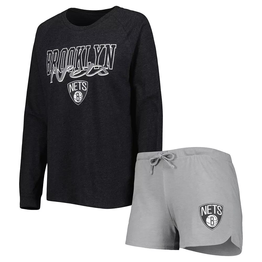 Cheer on your Brooklyn Nets in ultra-soft comfort with this cozy sleep set by Concepts Sport. It includes a toasty long sleeve tee with roomy raglan sleeves and adjustable bottoms for a customizable fit. Best of all they feature classic Brooklyn Nets graphics letting everyone know your fandom never rests.Cheer on your Brooklyn Nets in ultra-soft comfort with this cozy sleep set by Concepts Sport. It includes a toasty long sleeve tee with roomy raglan sleeves and adjustable bottoms for a customizable fit. Best of all they feature classic Brooklyn Nets graphics letting everyone know your fandom never rests.Officially licensedBrand: Concepts SportSet includes long sleeve T-shirt and shortsMachine wash, tumble dry lowRaglan sleevesImportedTagless CollarCrew neckInseam on size S shorts measures approx. 2.75''Elastic waistband with drawstringMaterial: 60% Cotton/40% PolyesterScreen print graphicsShorts with side split hem Size: 2X. Color: Charcoal. Gender: female. Age Group: adult.