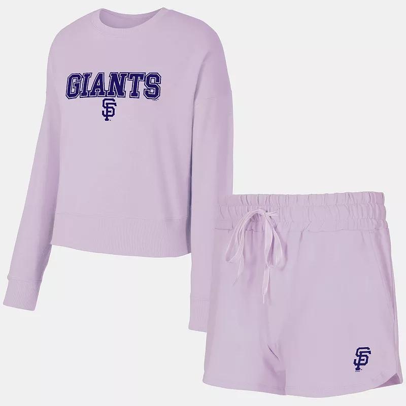 Enjoy ultimate comfort while repping your San Francisco Giants with this Concepts Sport Elevation Tri-Blend Long Sleeve T-Shirt & Shorts Set. Made from an ultra-soft tri-blend fabric, this San Francisco Giants set offers a luxuriously soft feel, perfect for catching some Zs or lounging around the house. The long sleeve top features a classic crew neckline and dropped shoulders, while the shorts offer a comfortable fit with a covered elastic waistband and drawstring.Enjoy ultimate comfort while repping your San Francisco Giants with this Concepts Sport Elevation Tri-Blend Long Sleeve T-Shirt & Shorts Set. Made from an ultra-soft tri-blend fabric, this San Francisco Giants set offers a luxuriously soft feel, perfect for catching some Zs or lounging around the house. The long sleeve top features a classic crew neckline and dropped shoulders, while the shorts offer a comfortable fit with a covered elastic waistband and drawstring.PRODUCT FEATURESTwo front pockets on shortsFrench terry liningLong sleeveLong sleeve top with crew neckline and dropped shouldersMaterial: 70% Cotton/24% Polyester/6% SpandexBrand: Concepts SportScreen print graphics across chest of shirt and on the left leg of shortsSet includes long sleeve top and shortsInseam on size M shorts measures approx. 4Officially licensedRib-knit bottom band and sleeve cuffsShorts with covered elastic waistband, drawstring and curved hemMachine wash, tumble dry lowImported Color: Team. Gender: female. Age Group: adult.